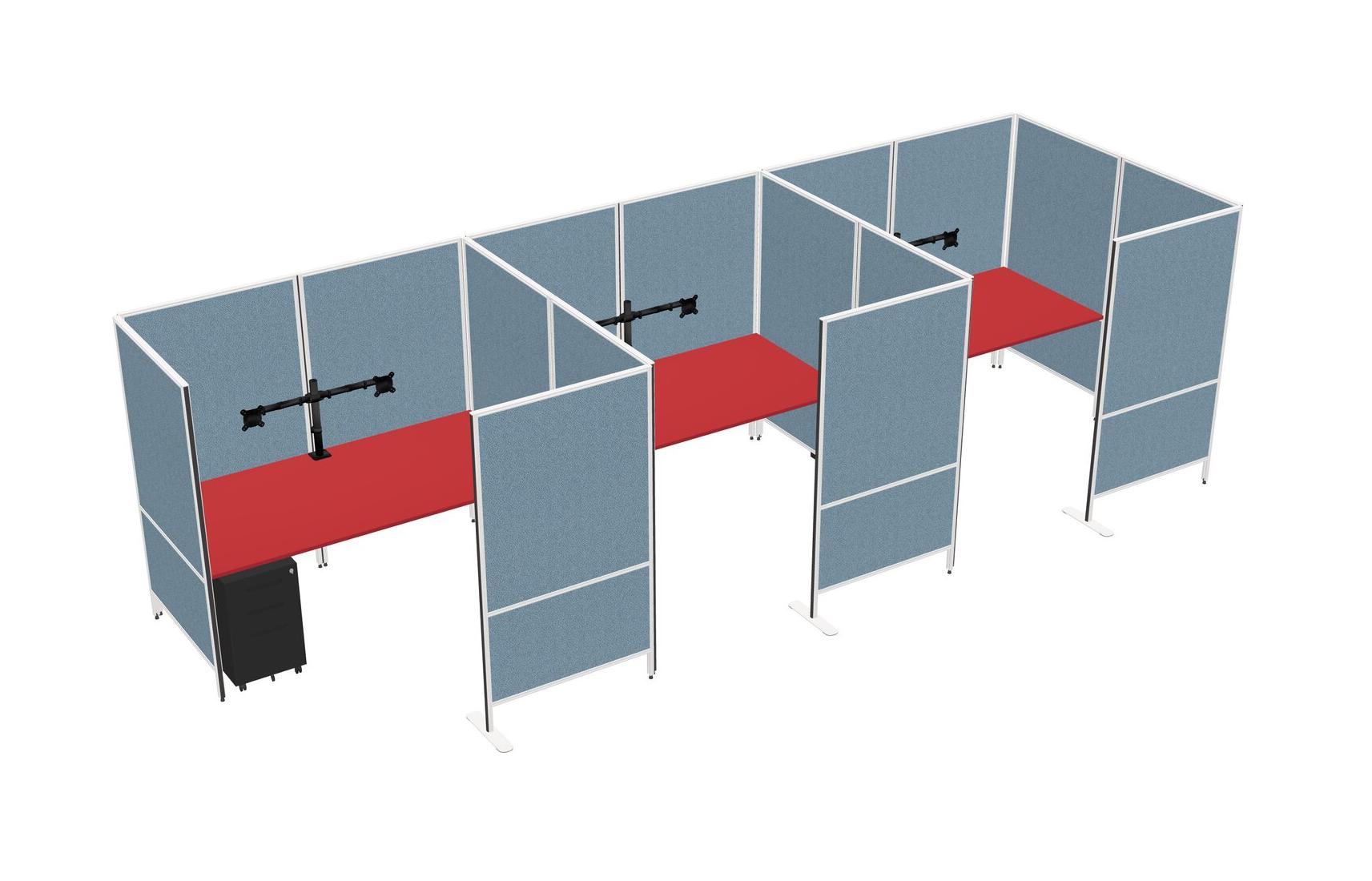 Prism Red Flexible Panel System With Privacy For 3 + Metal Mobile Drawers + Monitor Arm (double Arms)
