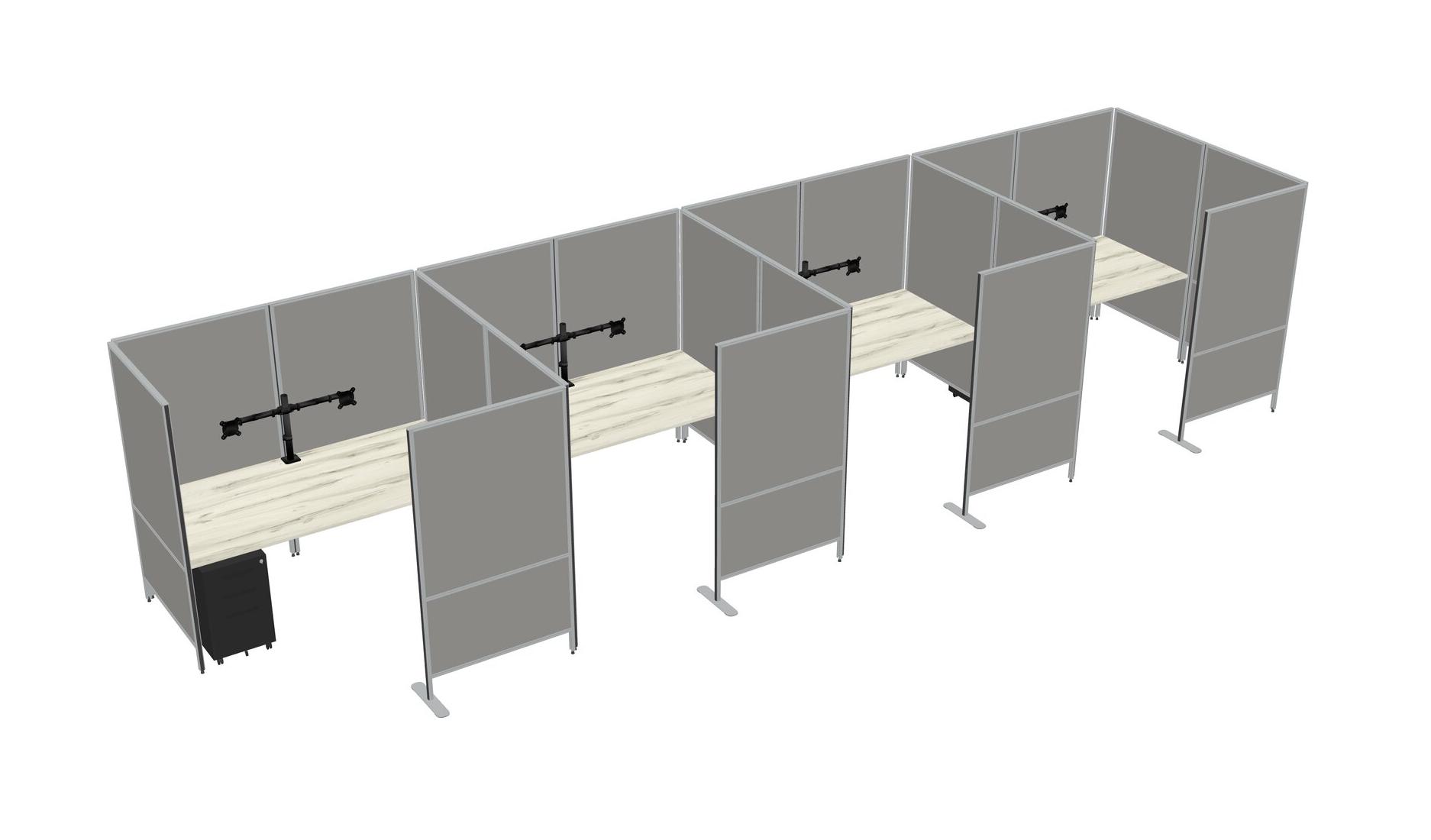 Heinne Holz Flexible Panel System With Privacy For 4 + Metal Mobile Drawers + Monitor Arm (double Arms)