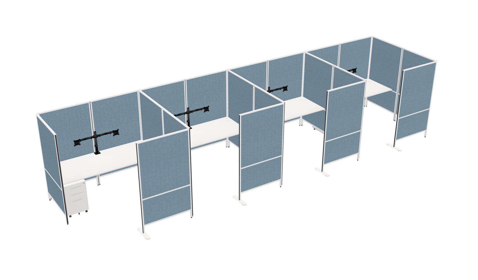 White Flexible Panel System With Privacy For 4 + Metal Mobile Drawers + Monitor Arm (double Arms)
