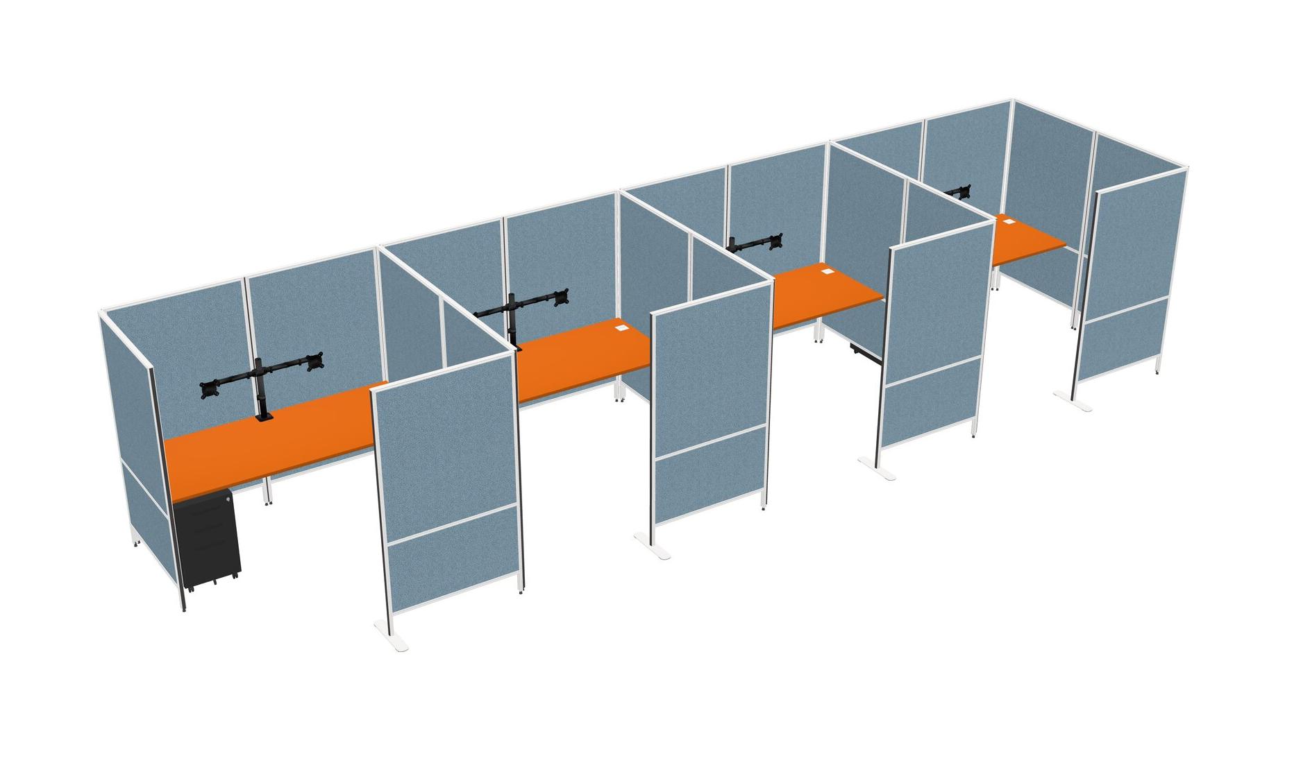 Orange Flexible Panel System With Privacy For 4 + Metal Mobile Drawers + Monitor Arm (double Arms)