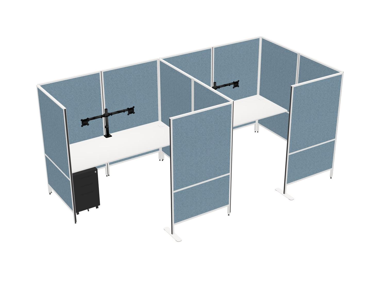White Flexible Panel System With Privacy For 2 + Metal Mobile Drawers + Monitor Arm (double Arms)