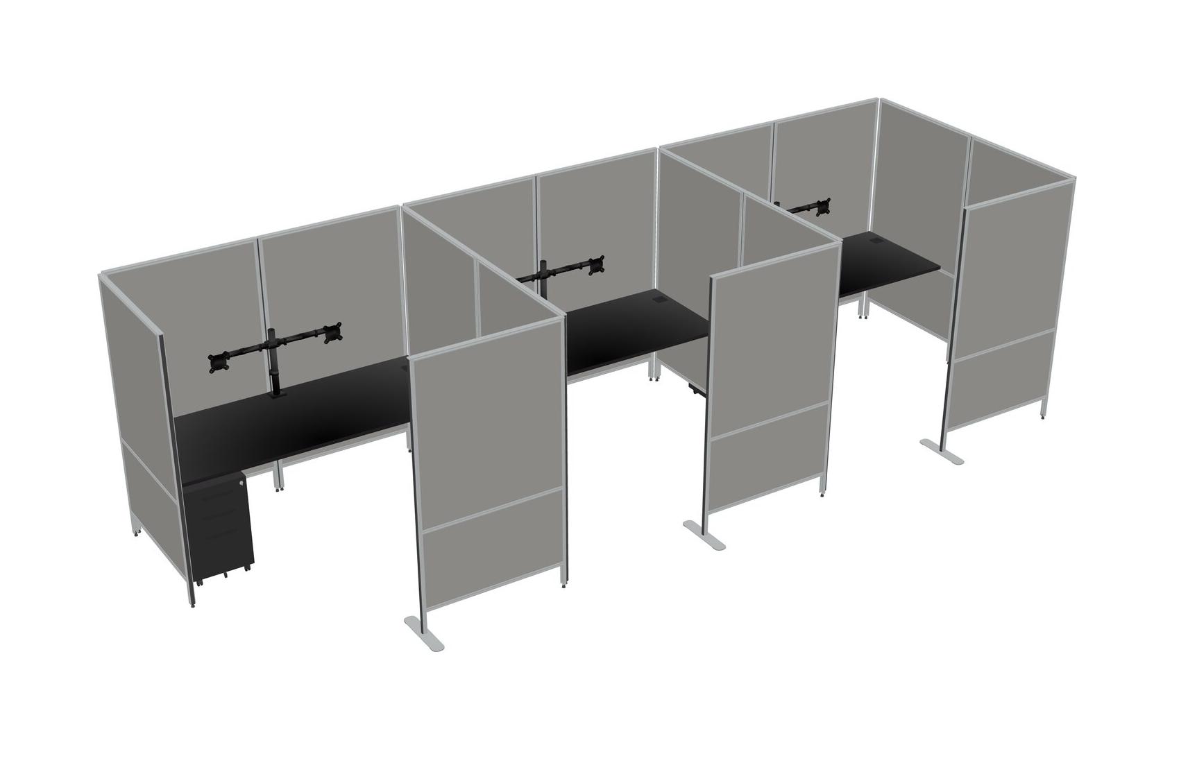Black Flexible Panel System With Privacy For 3 + Metal Mobile Drawers + Monitor Arm (double Arms)