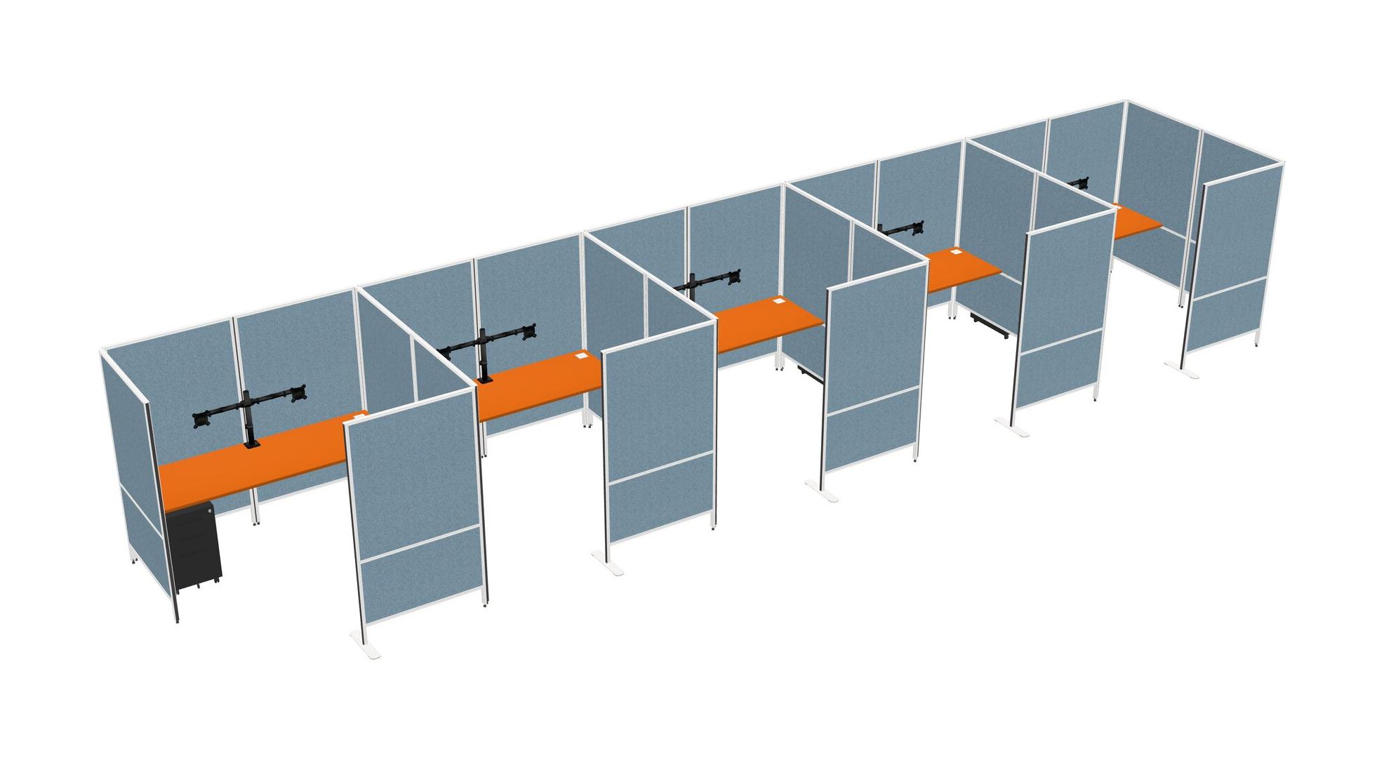 Orange Flexible Panel System With Privacy For 5 + Metal Mobile Drawers + Monitor Arm (double Arms)