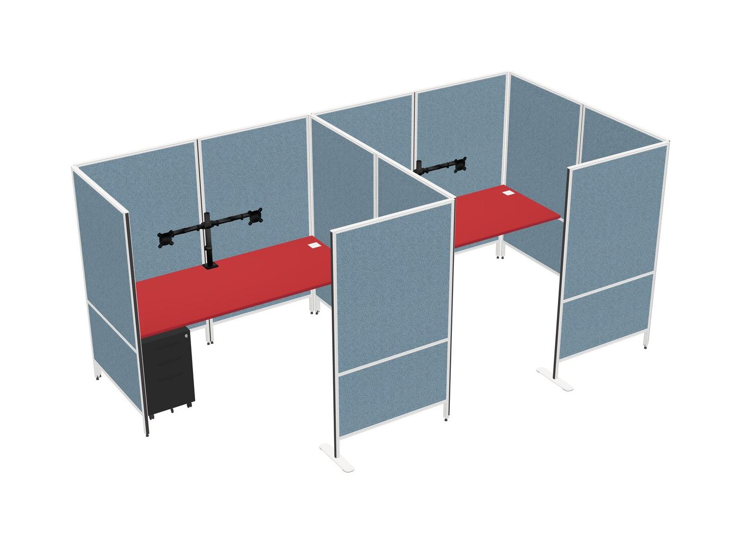 Prism Red Flexible Panel System With Privacy For 2 + Metal Mobile Drawers + Monitor Arm (double Arms)