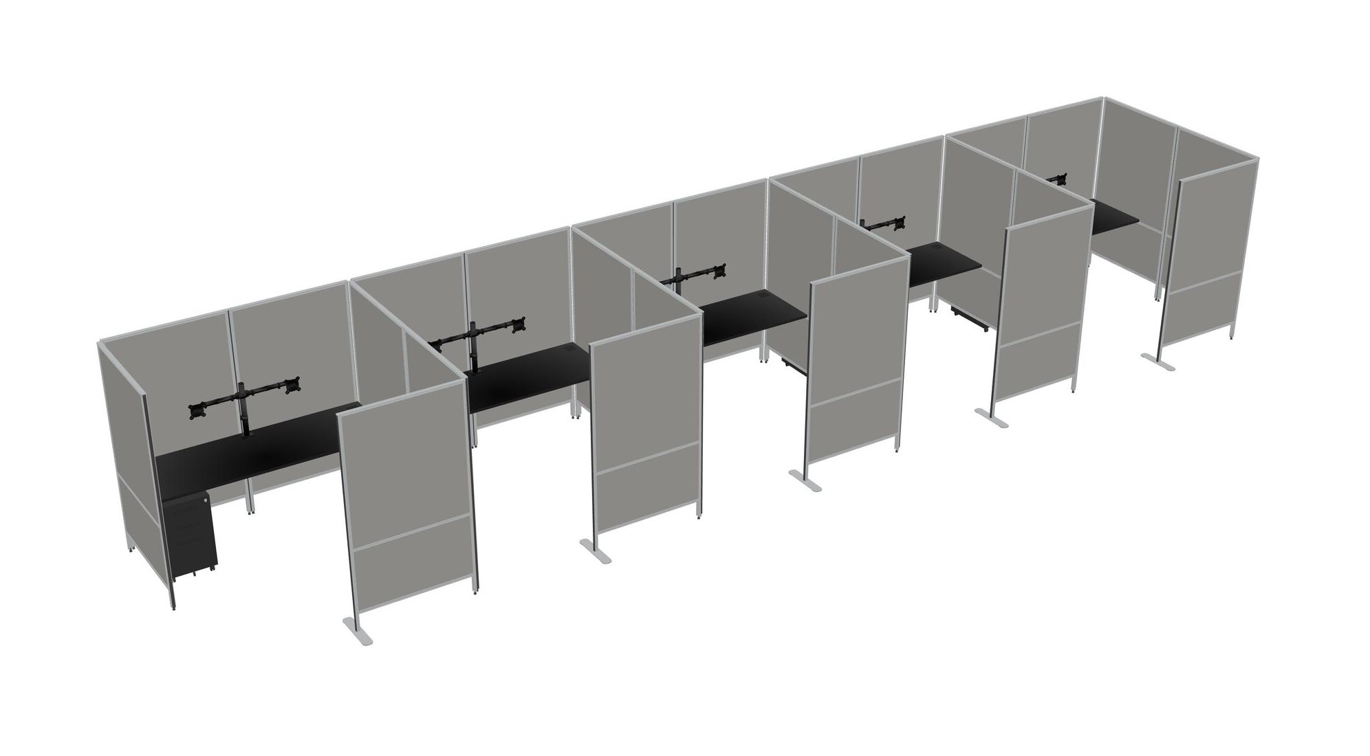 Black Flexible Panel System With Privacy For 5 + Metal Mobile Drawers + Monitor Arm (double Arms)