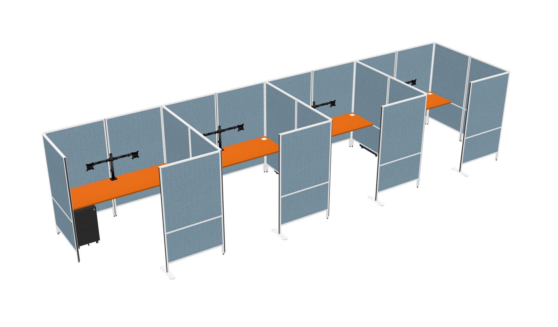 Orange Flexible Panel System With Privacy For 4 + Metal Mobile Drawers + Monitor Arm (double Arms)