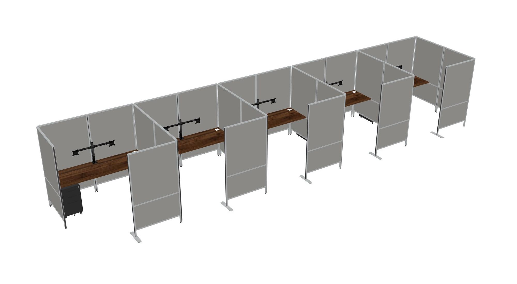 Columbia Walnut Flexible Panel System With Privacy For 5 + Metal Mobile Drawers + Monitor Arm (double Arms)