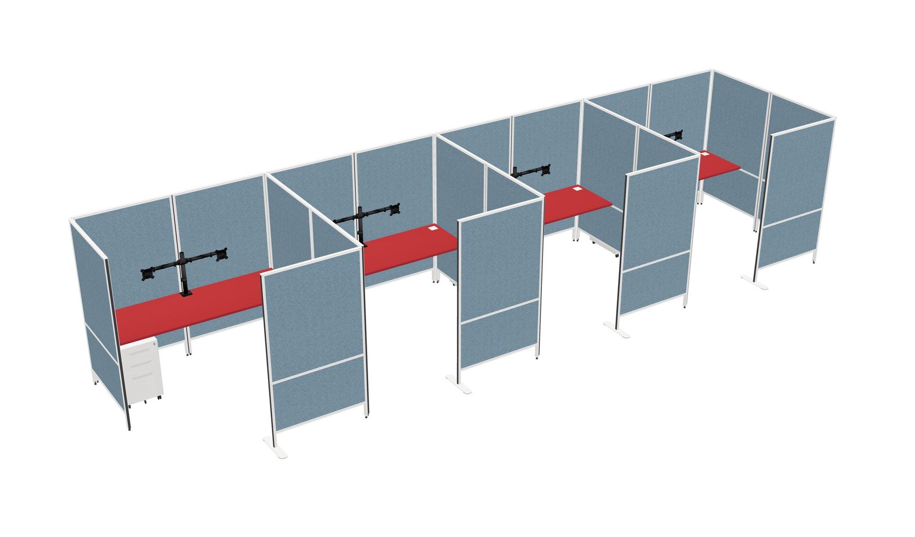 Prism Red Flexible Panel System With Privacy For 4 + Metal Mobile Drawers + Monitor Arm (double Arms)