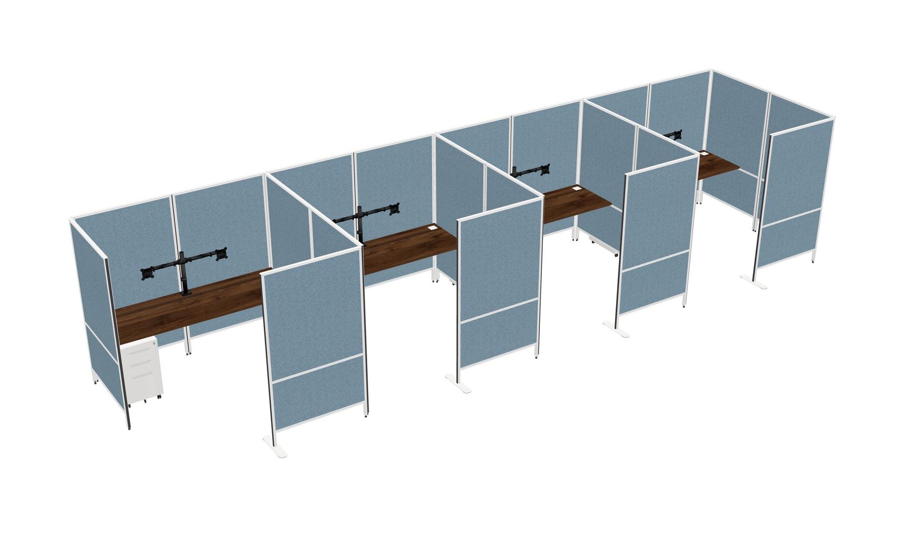 Columbia Walnut Flexible Panel System With Privacy For 4 + Metal Mobile Drawers + Monitor Arm (double Arms)