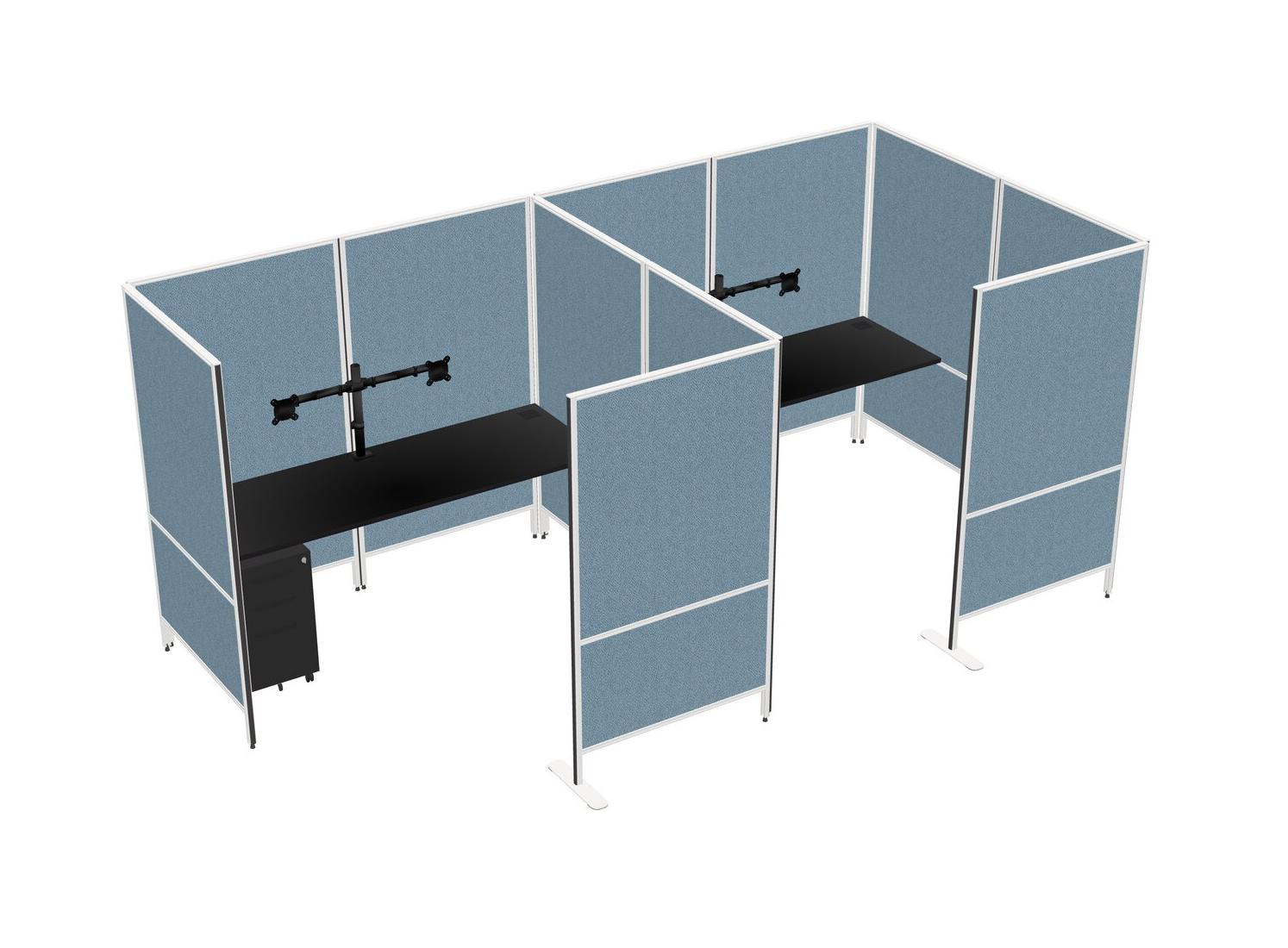 Black Flexible Panel System With Privacy For 2 + Metal Mobile Drawers + Monitor Arm (double Arms)