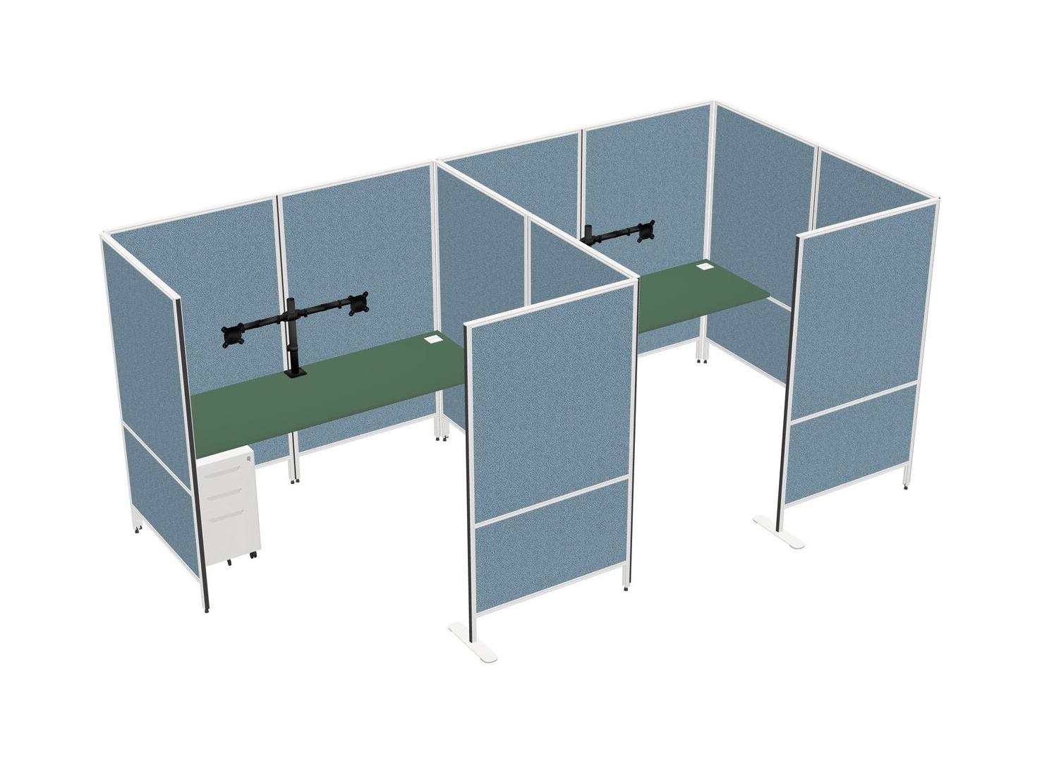 Green Flexible Panel System With Privacy For 2 + Metal Mobile Drawers + Monitor Arm (double Arms)
