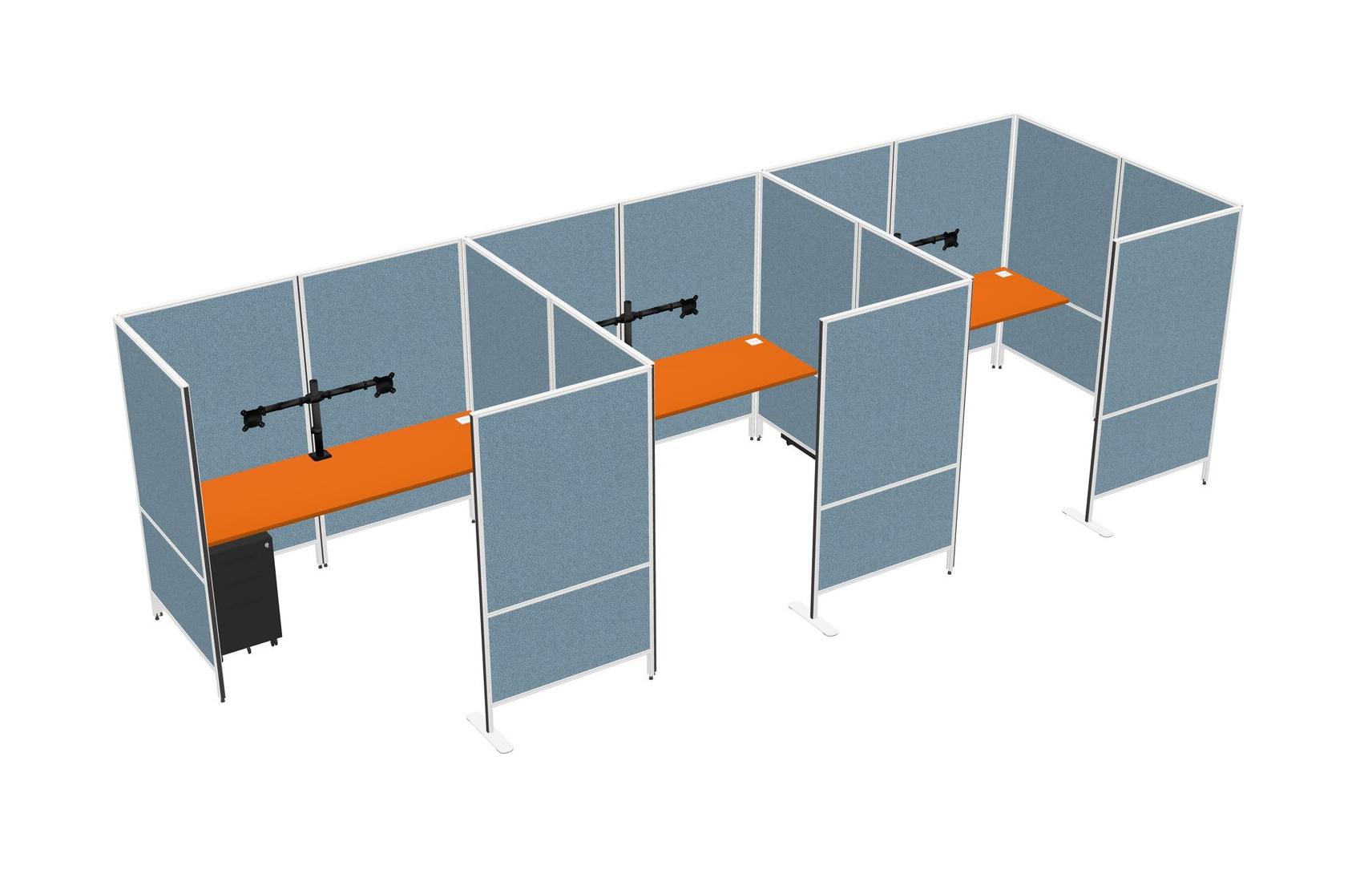 Orange Flexible Panel System With Privacy For 3 + Metal Mobile Drawers + Monitor Arm (double Arms)