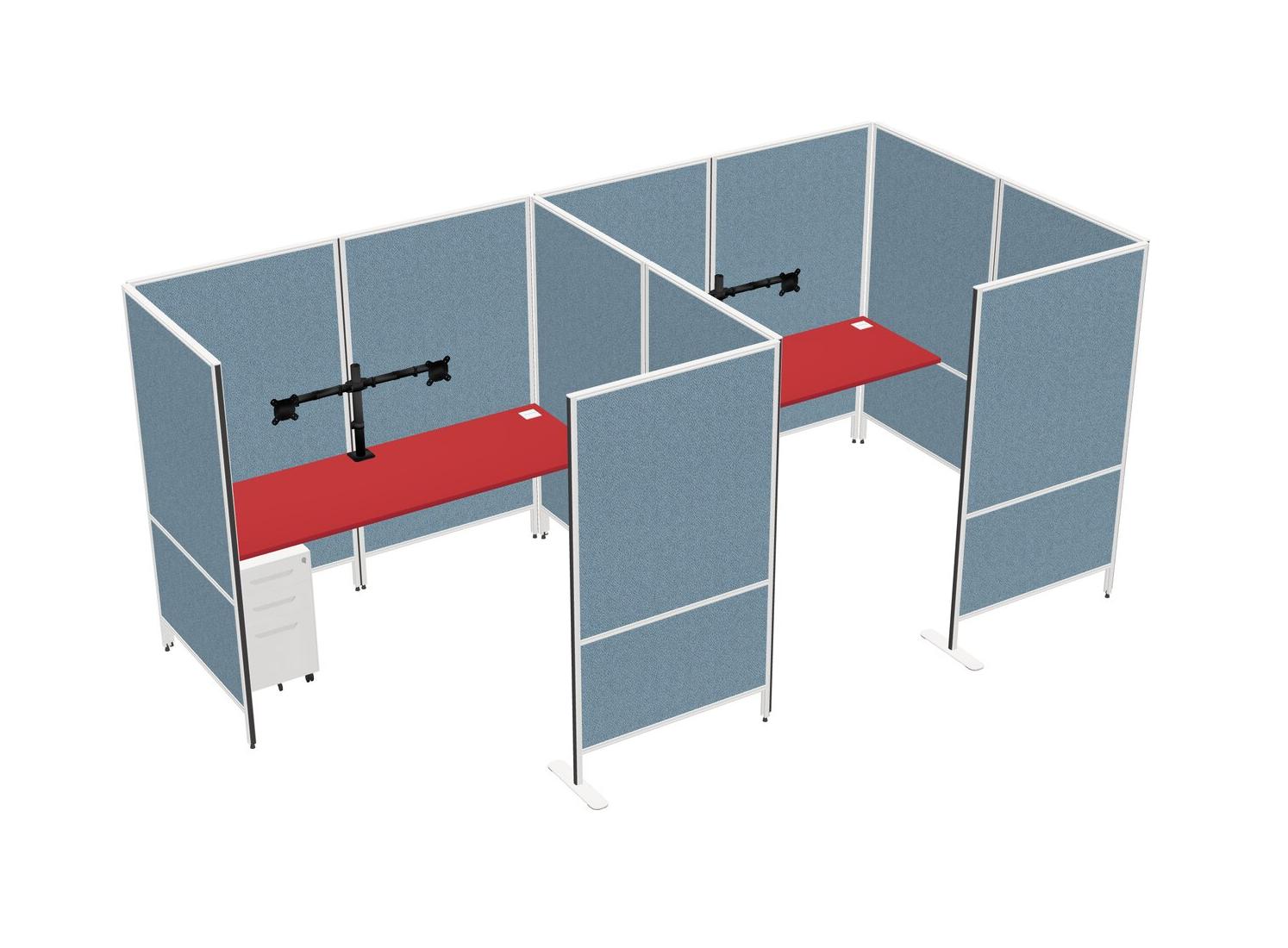 Prism Red Flexible Panel System With Privacy For 2 + Metal Mobile Drawers + Monitor Arm (double Arms)