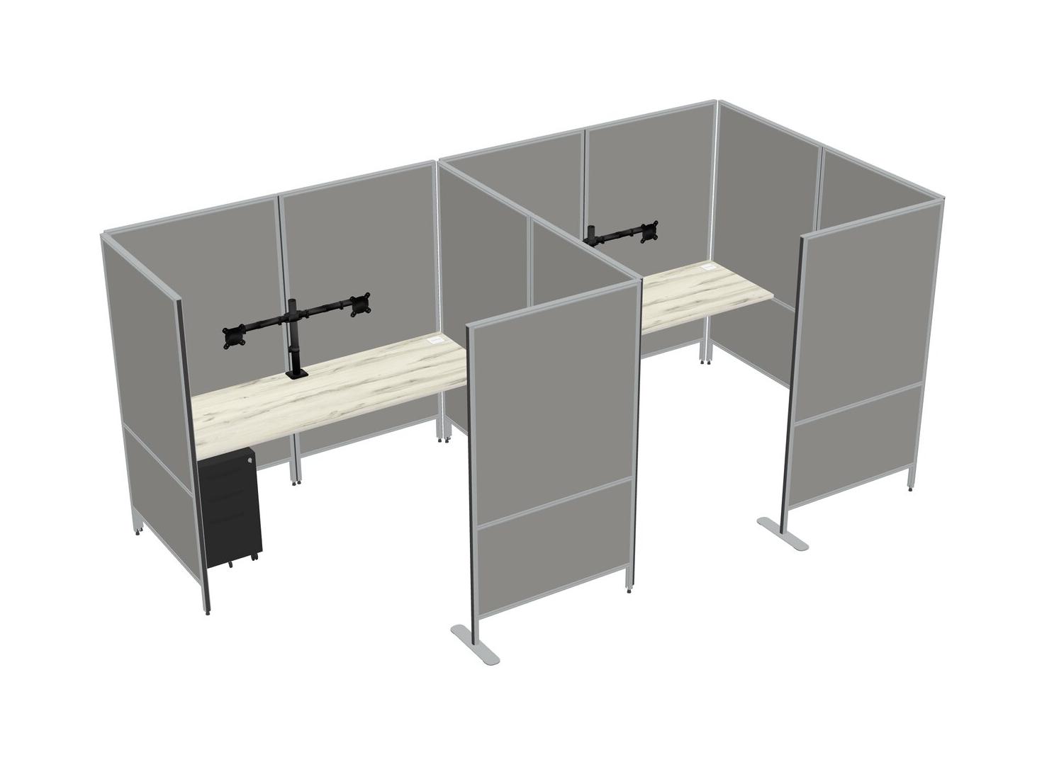 Heinne Holz Flexible Panel System With Privacy For 2 + Metal Mobile Drawers + Monitor Arm (double Arms)
