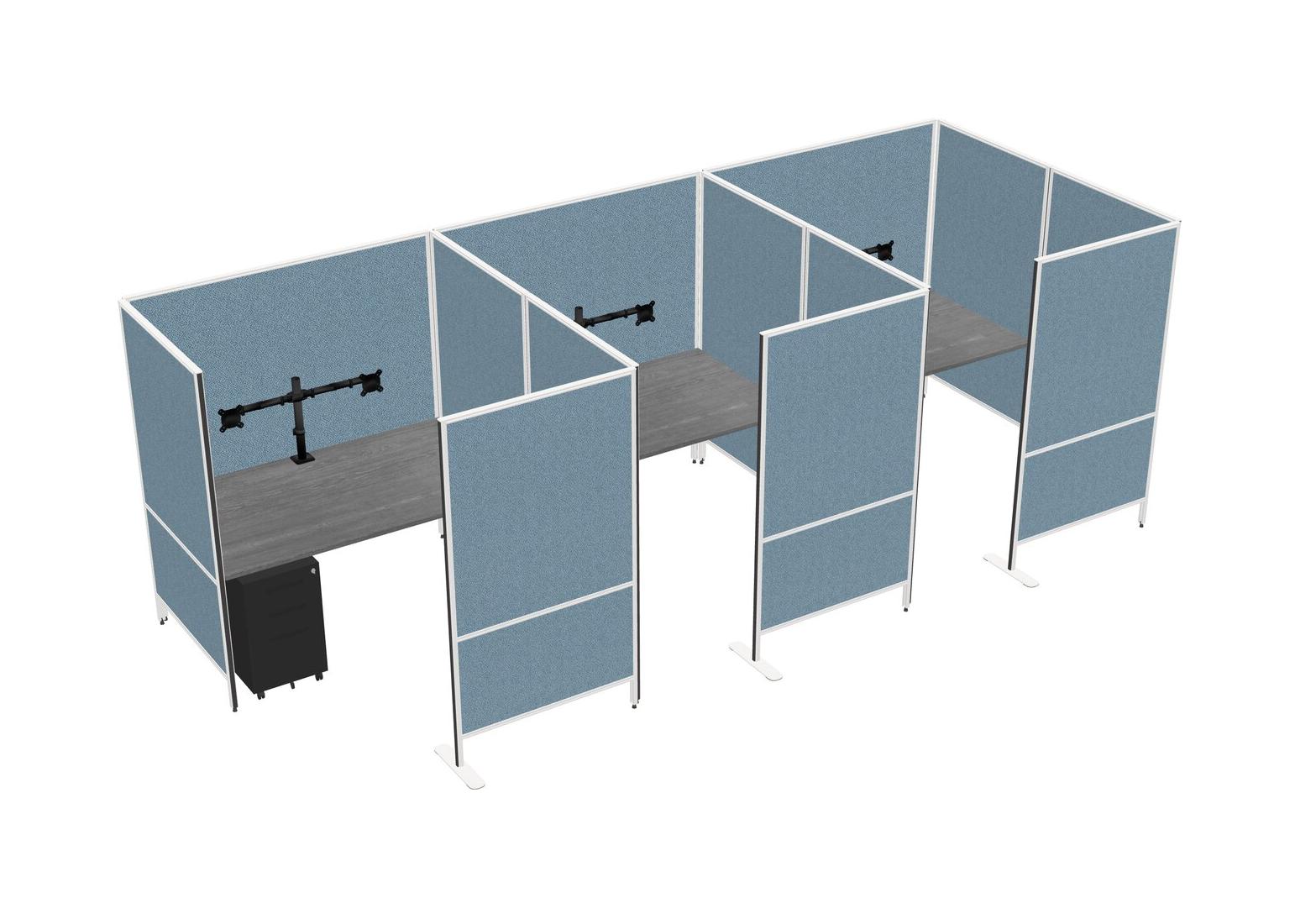 Grey Flexible Panel System With Privacy For 3 + Metal Mobile Drawers + Monitor Arm (double Arms)