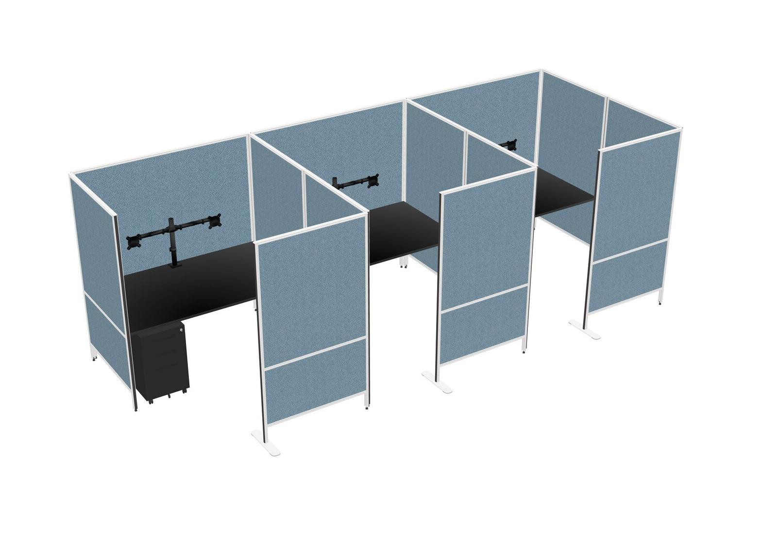 Black Flexible Panel System With Privacy For 3 + Metal Mobile Drawers + Monitor Arm (double Arms)