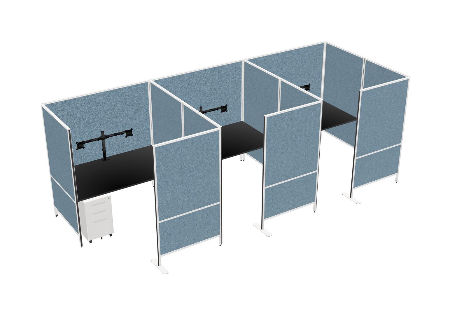 Black Flexible Panel System With Privacy For 3 + Metal Mobile Drawers + Monitor Arm (double Arms)