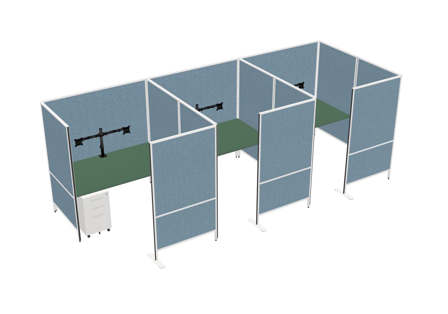 Green Flexible Panel System With Privacy For 3 + Metal Mobile Drawers + Monitor Arm (double Arms)