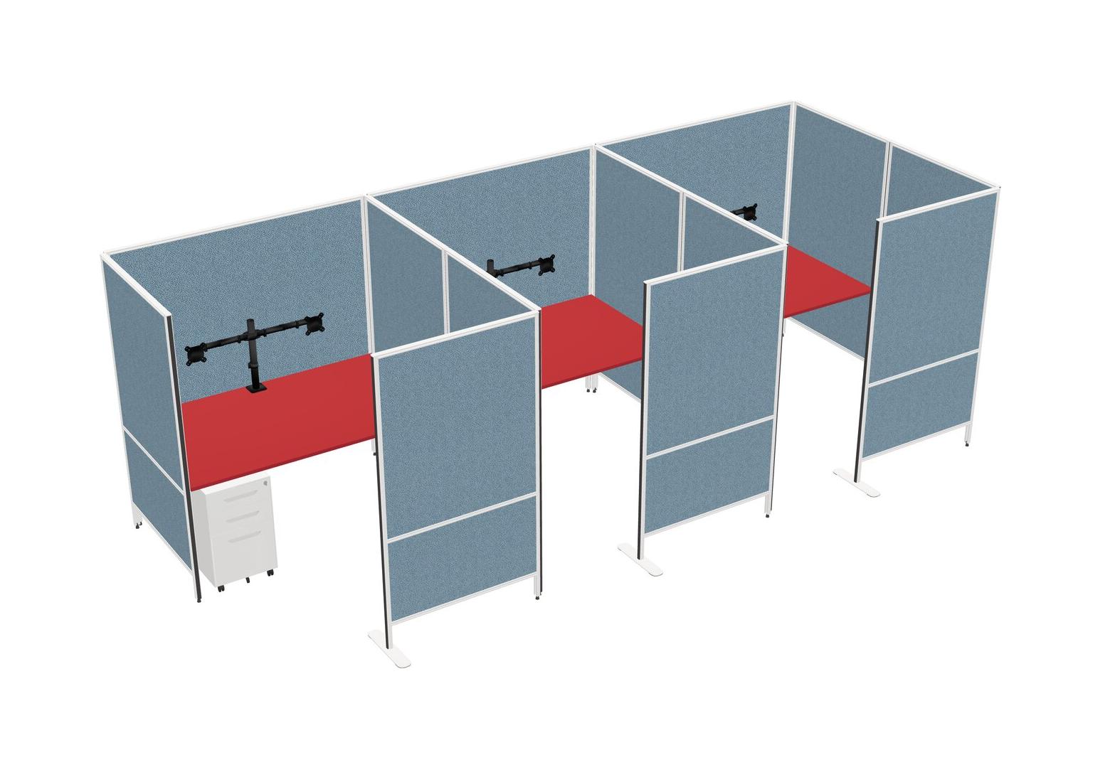 Prism Red Flexible Panel System With Privacy For 3 + Metal Mobile Drawers + Monitor Arm (double Arms)