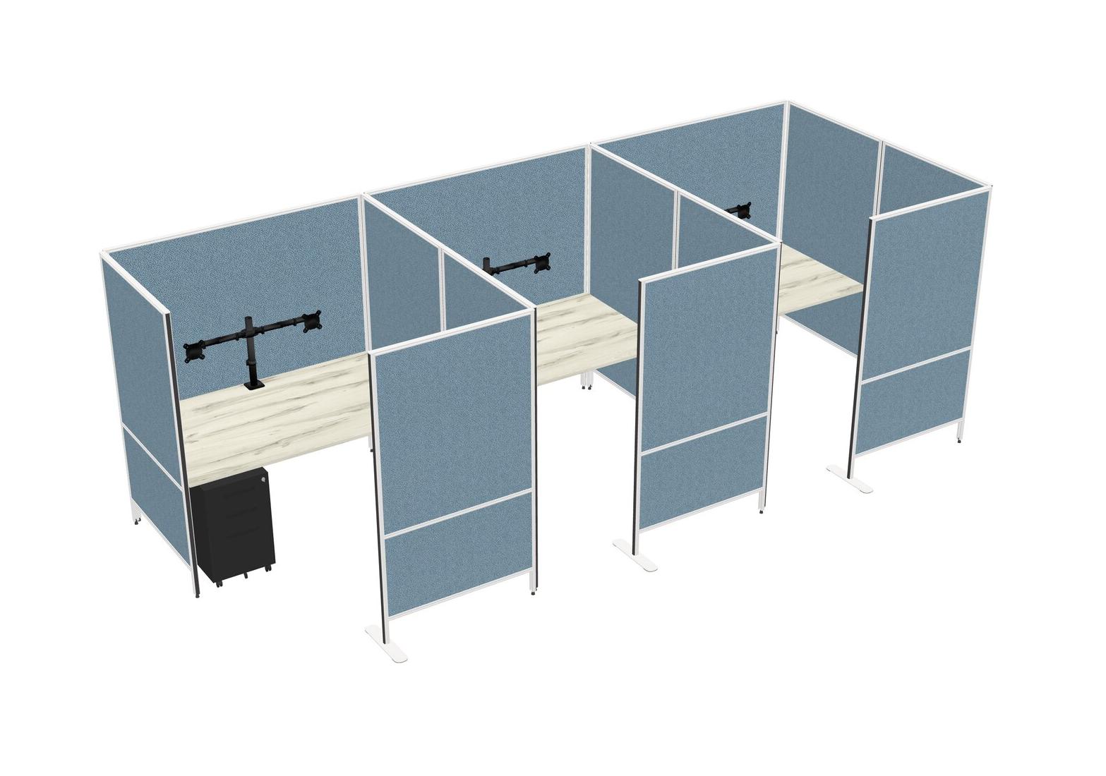 Heinne Holz Flexible Panel System With Privacy For 3 + Metal Mobile Drawers + Monitor Arm (double Arms)