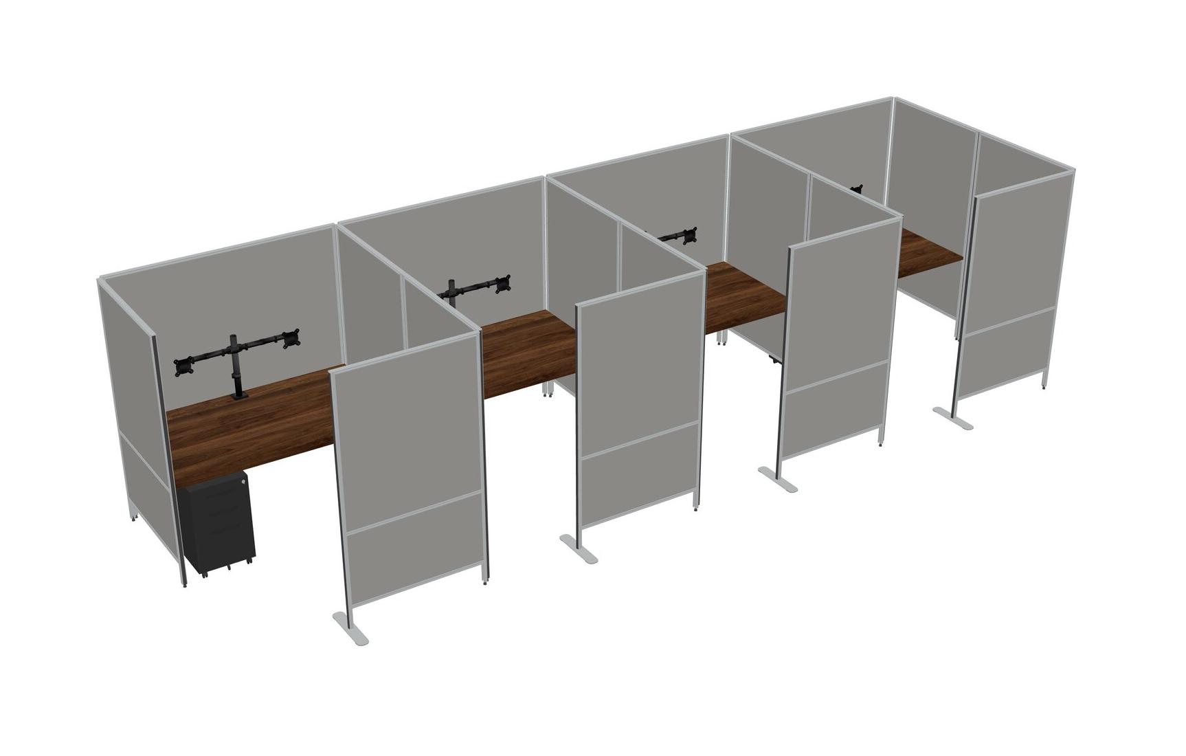 Columbia Walnut Flexible Panel System With Privacy For 4 + Metal Mobile Drawers + Monitor Arm (double Arms)