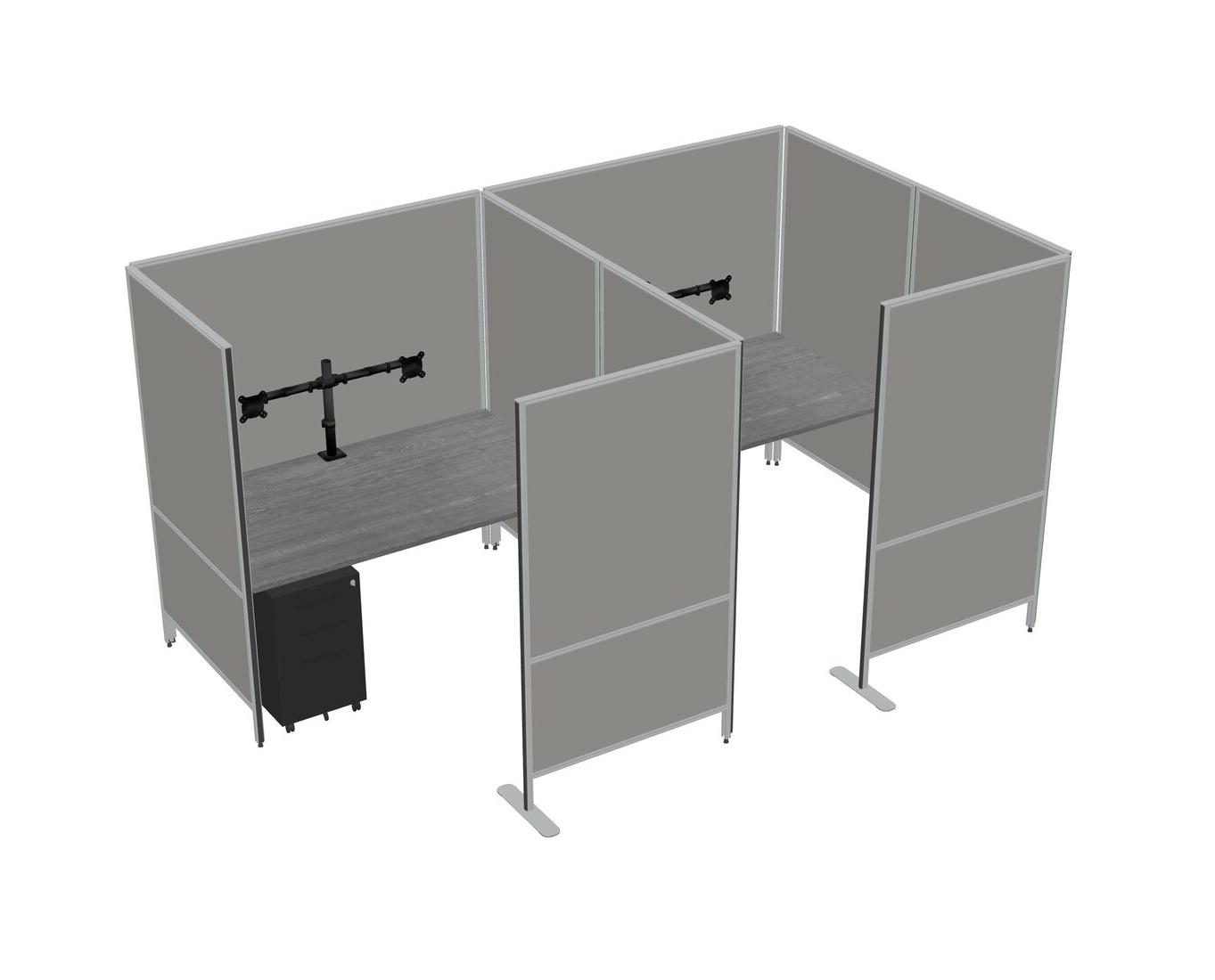 Grey Flexible Panel System With Privacy For 2 + Metal Mobile Drawers + Monitor Arm (double Arms)