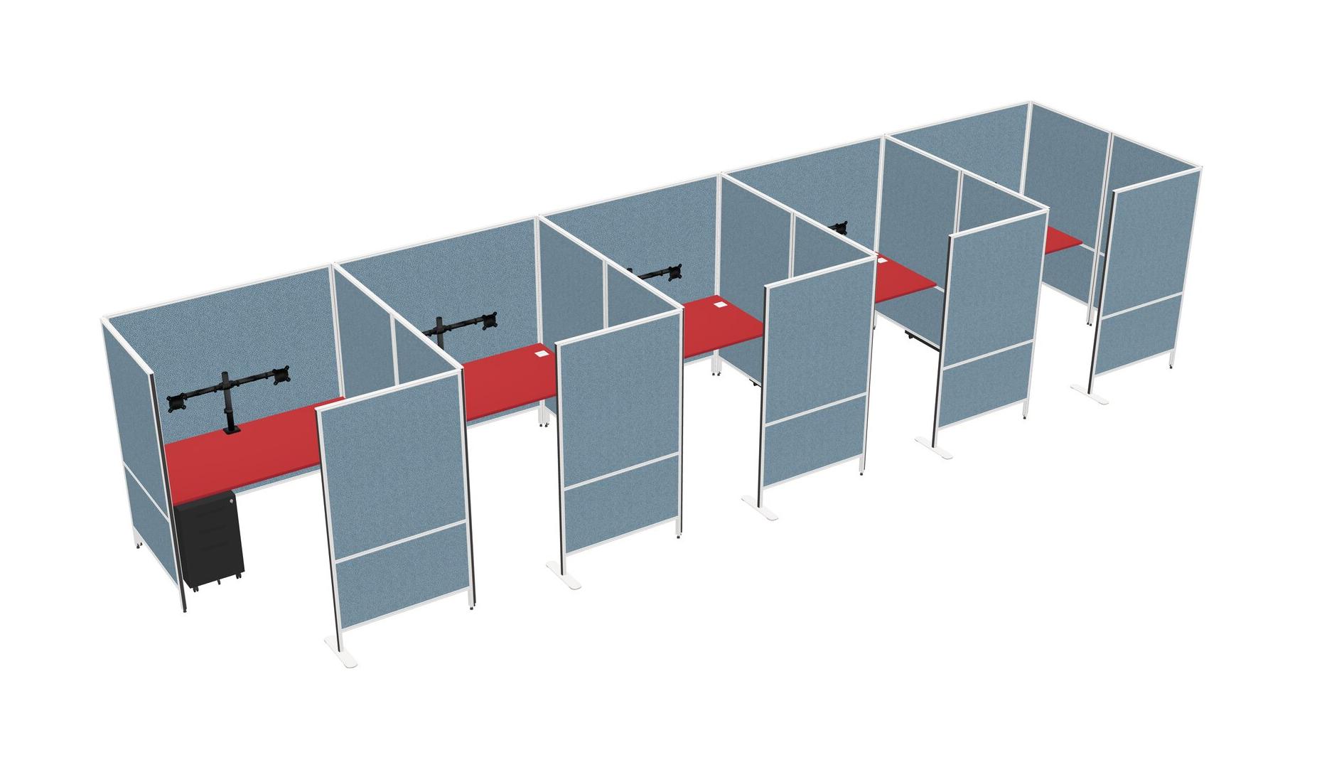 Prism Red Flexible Panel System With Privacy For 5 + Metal Mobile Drawers + Monitor Arm (double Arms)