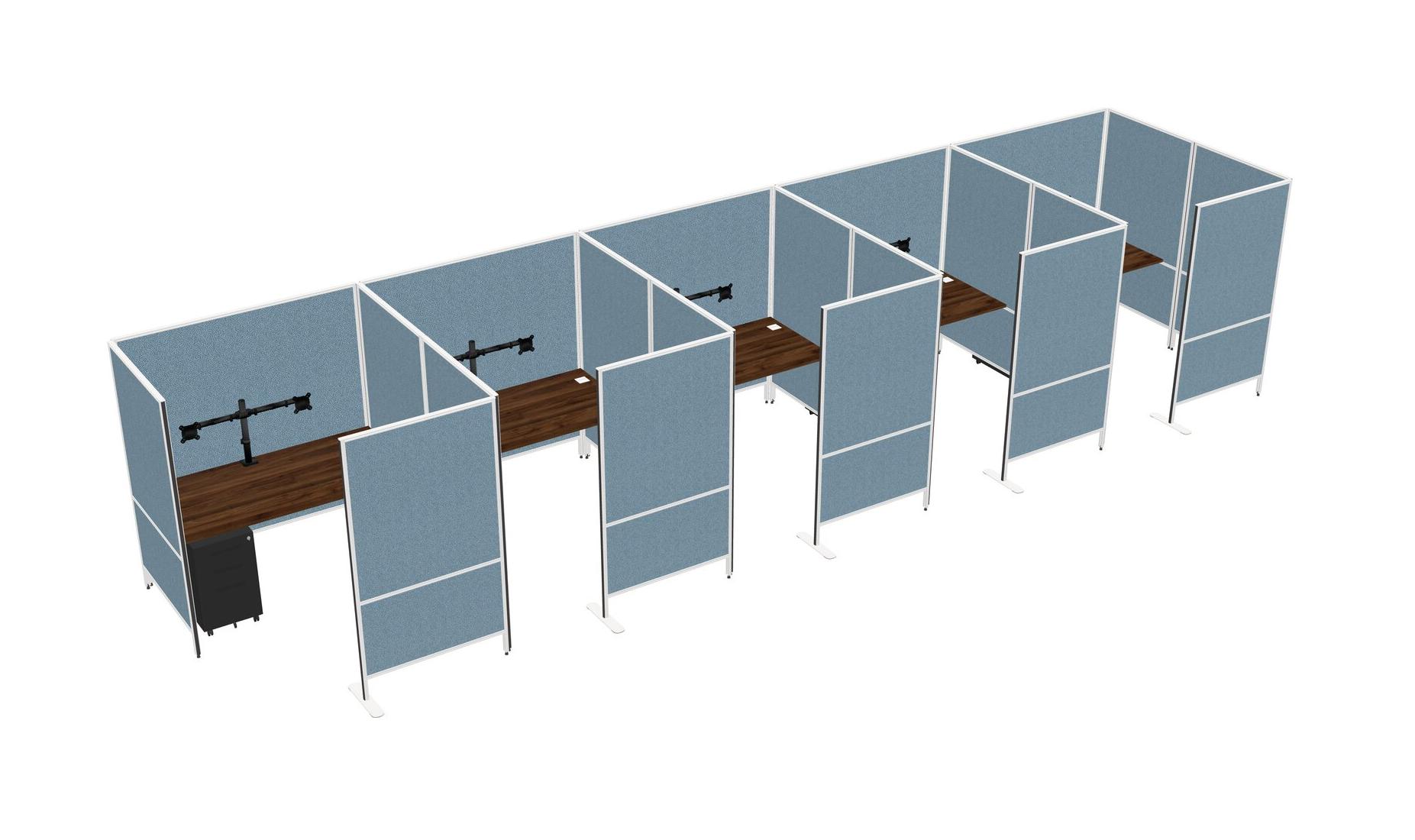 Columbia Walnut Flexible Panel System With Privacy For 5 + Metal Mobile Drawers + Monitor Arm (double Arms)