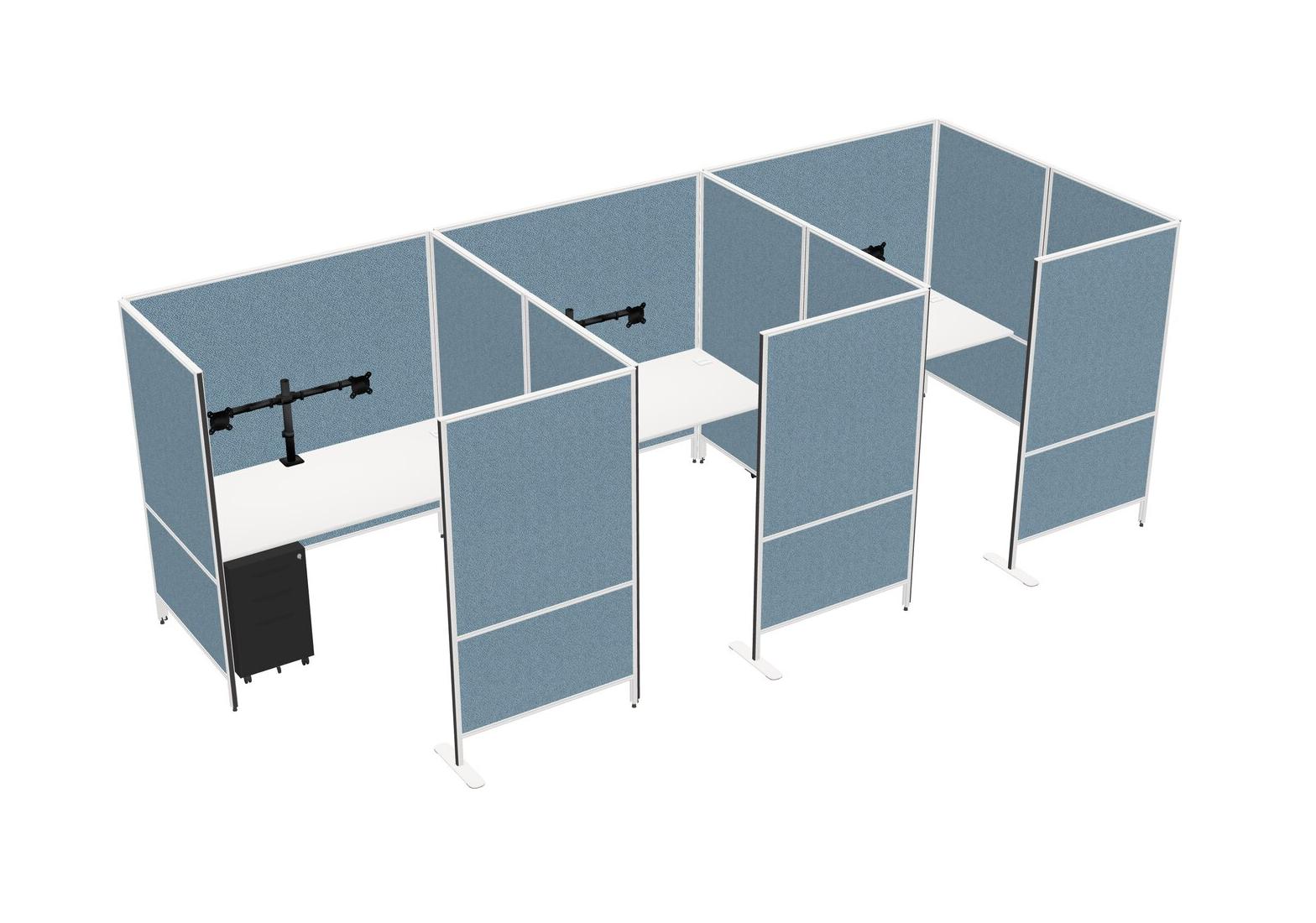 White Flexible Panel System With Privacy For 3 + Metal Mobile Drawers + Monitor Arm (double Arms)