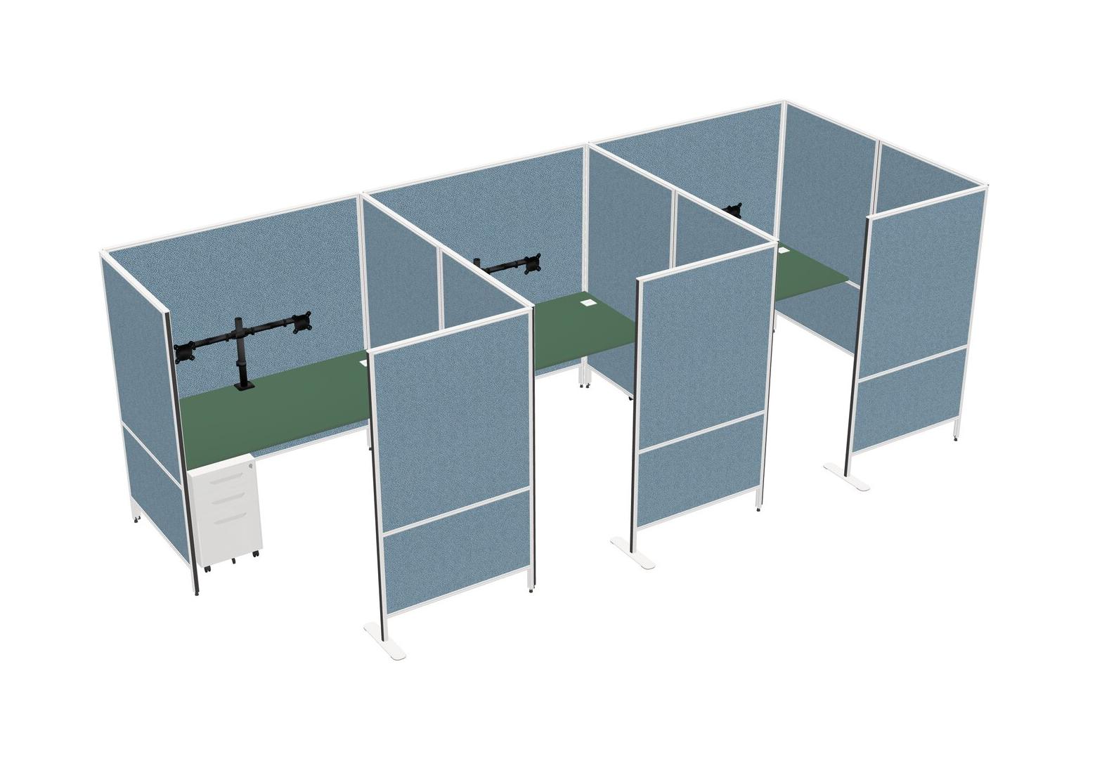 Green Flexible Panel System With Privacy For 3 + Metal Mobile Drawers + Monitor Arm (double Arms)