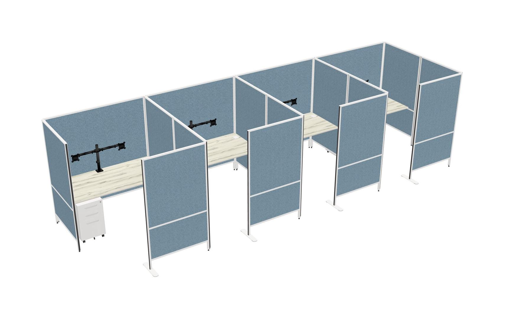Heinne Holz Flexible Panel System With Privacy For 4 + Metal Mobile Drawers + Monitor Arm (double Arms)