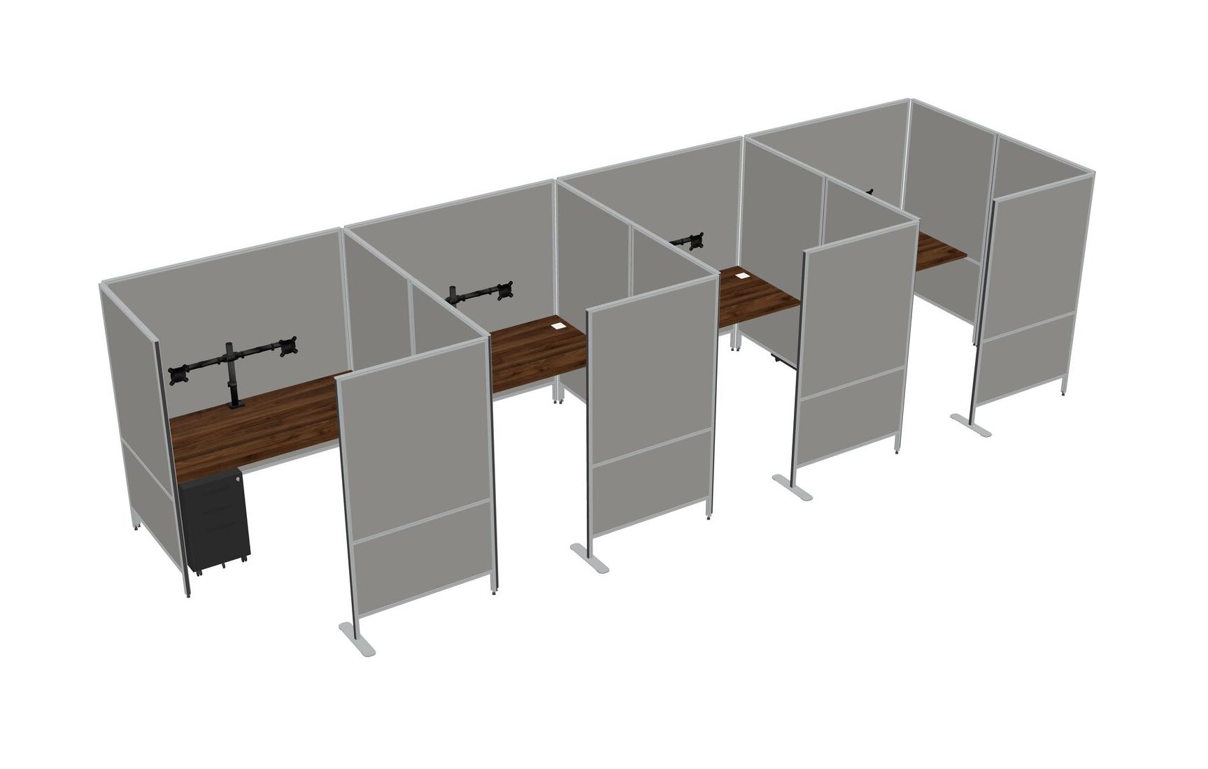 Columbia Walnut Flexible Panel System With Privacy For 4 + Metal Mobile Drawers + Monitor Arm (double Arms)
