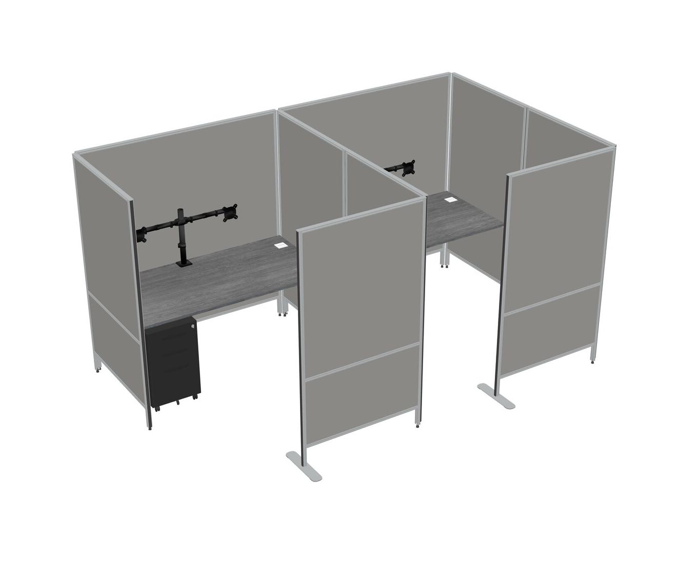 Grey Flexible Panel System With Privacy For 2 + Metal Mobile Drawers + Monitor Arm (double Arms)