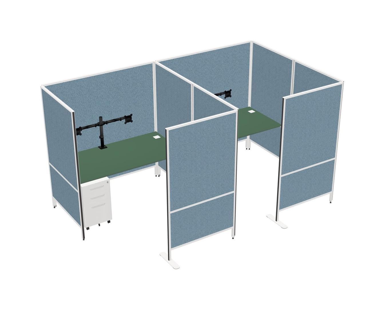 Green Flexible Panel System With Privacy For 2 + Metal Mobile Drawers + Monitor Arm (double Arms)