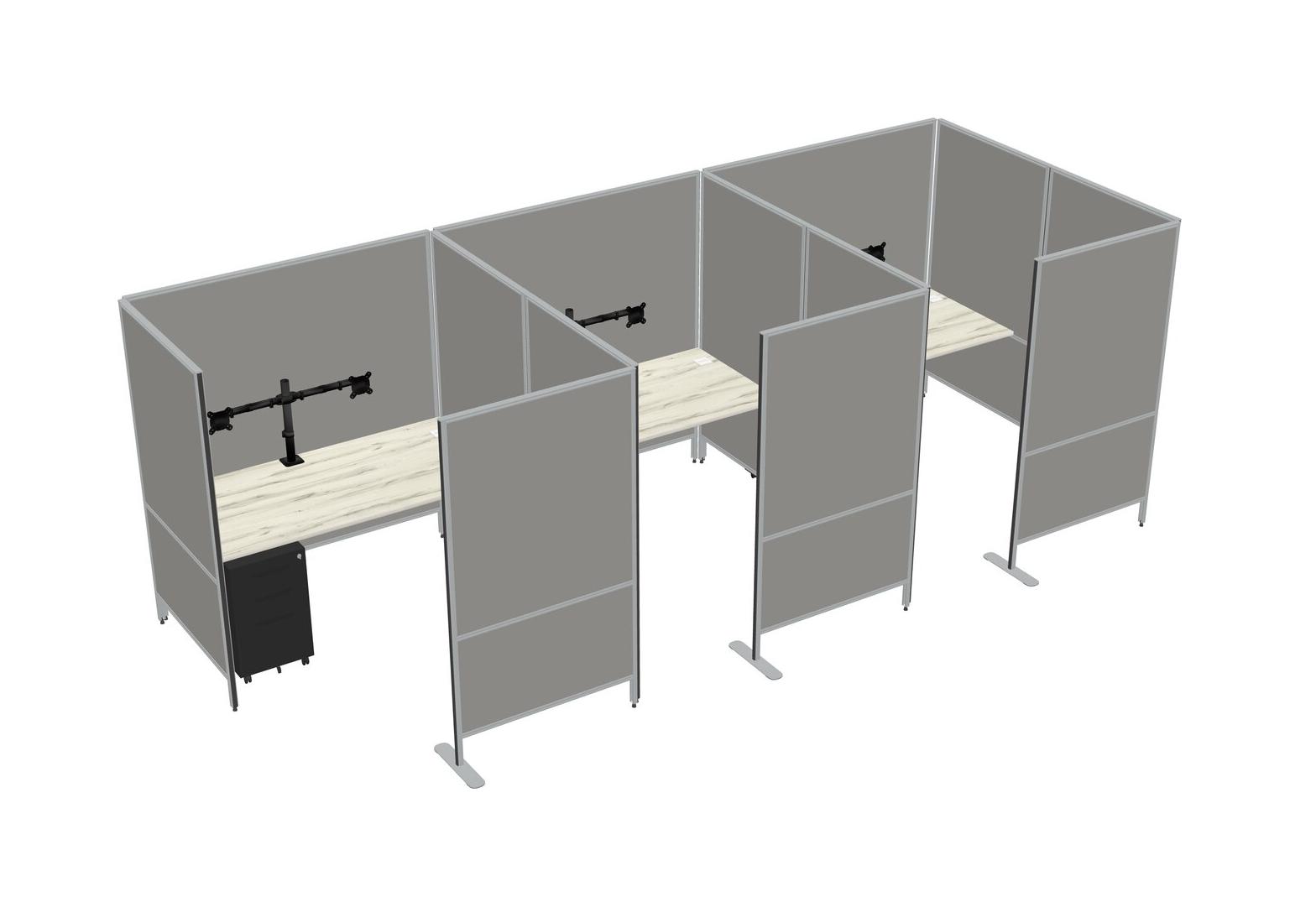 Heinne Holz Flexible Panel System With Privacy For 3 + Metal Mobile Drawers + Monitor Arm (double Arms)