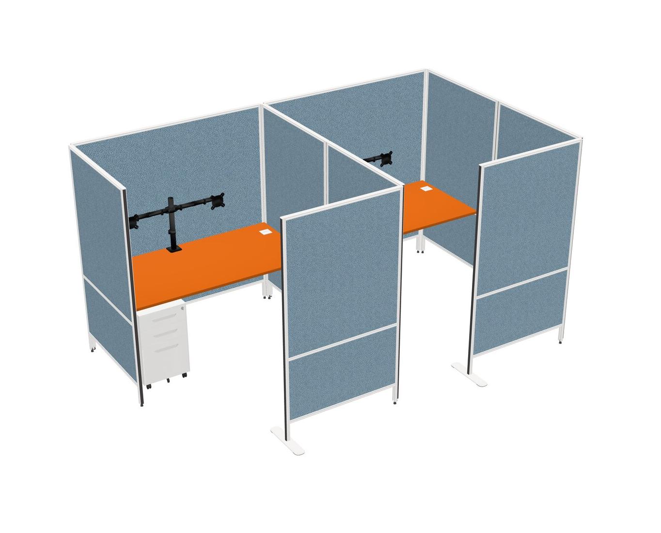 Orange Flexible Panel System With Privacy For 2 + Metal Mobile Drawers + Monitor Arm (double Arms)
