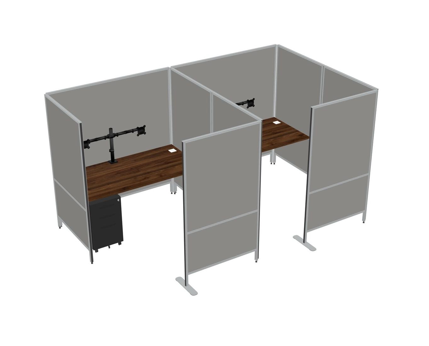 Columbia Walnut Flexible Panel System With Privacy For 2 + Metal Mobile Drawers + Monitor Arm (double Arms)
