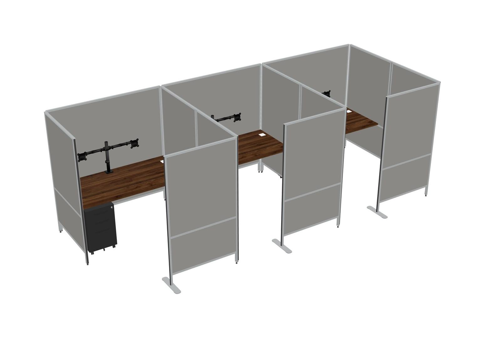 Columbia Walnut Flexible Panel System With Privacy For 3 + Metal Mobile Drawers + Monitor Arm (double Arms)