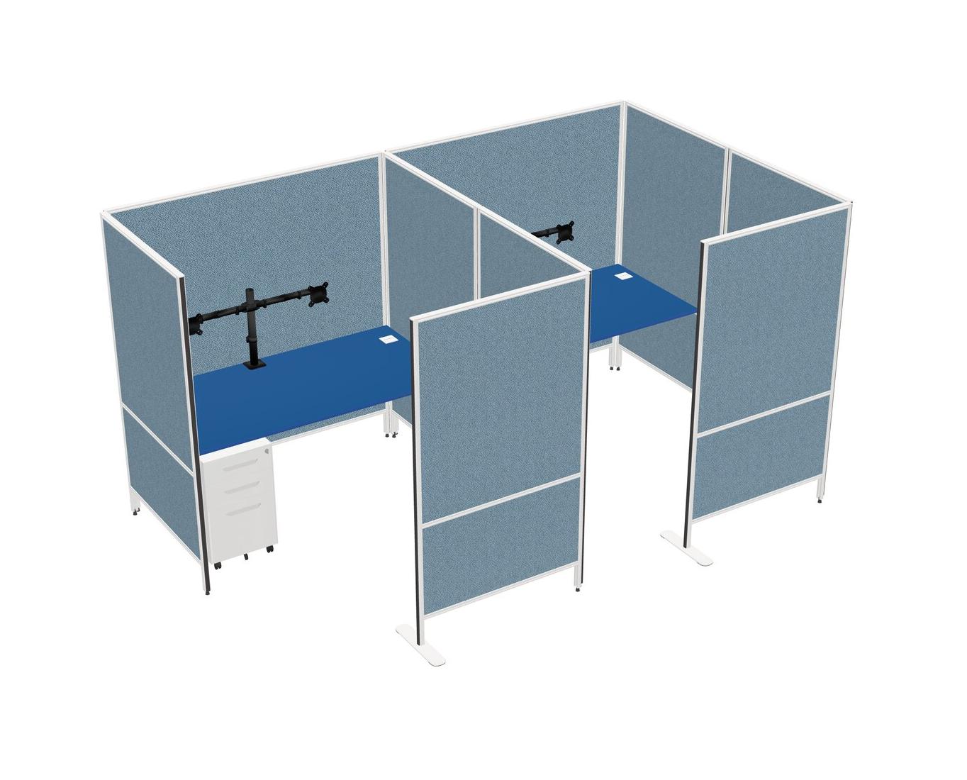 Prism Blue Flexible Panel System With Privacy For 2 + Metal Mobile Drawers + Monitor Arm (double Arms)