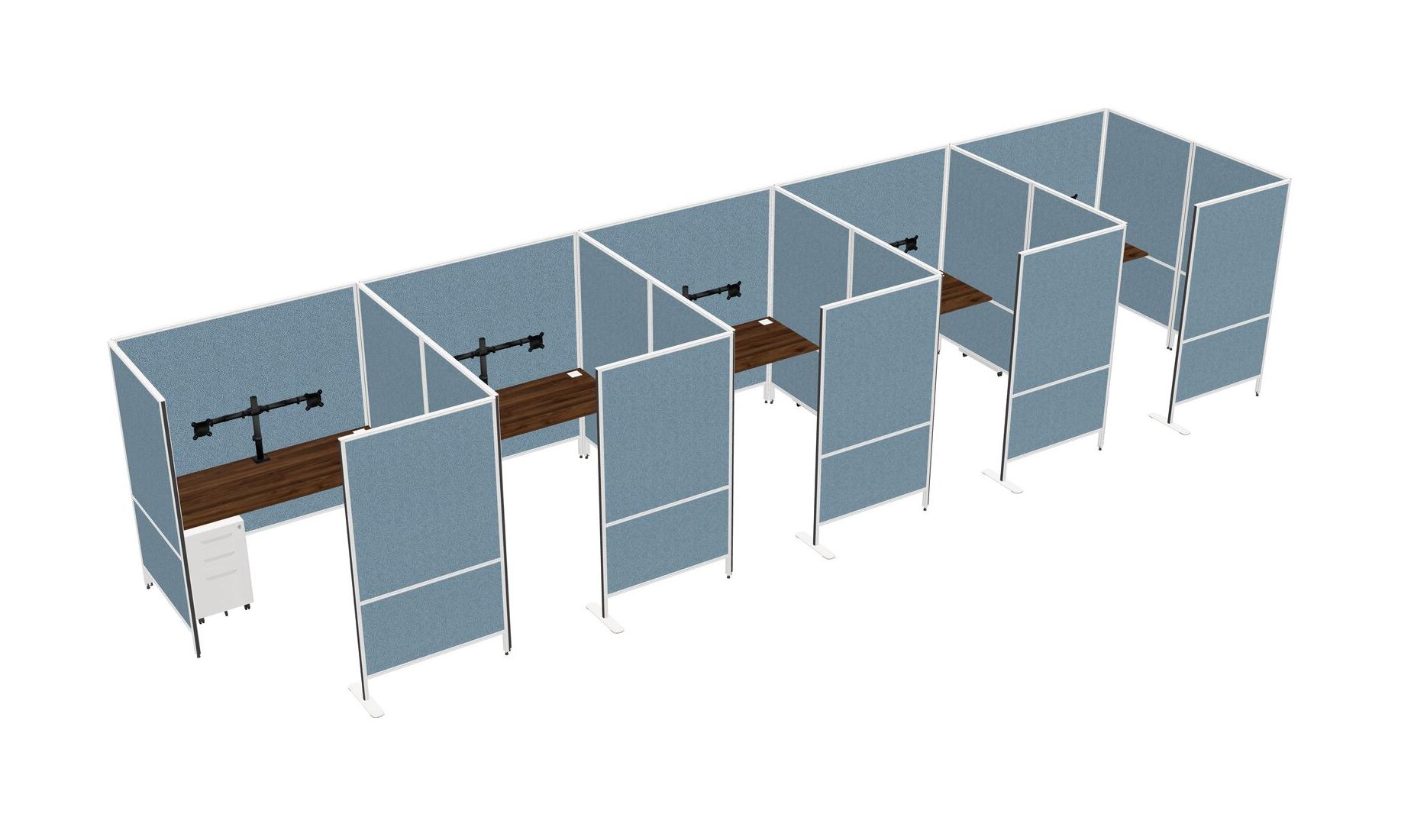 Columbia Walnut Flexible Panel System With Privacy For 5 + Metal Mobile Drawers + Monitor Arm (double Arms)