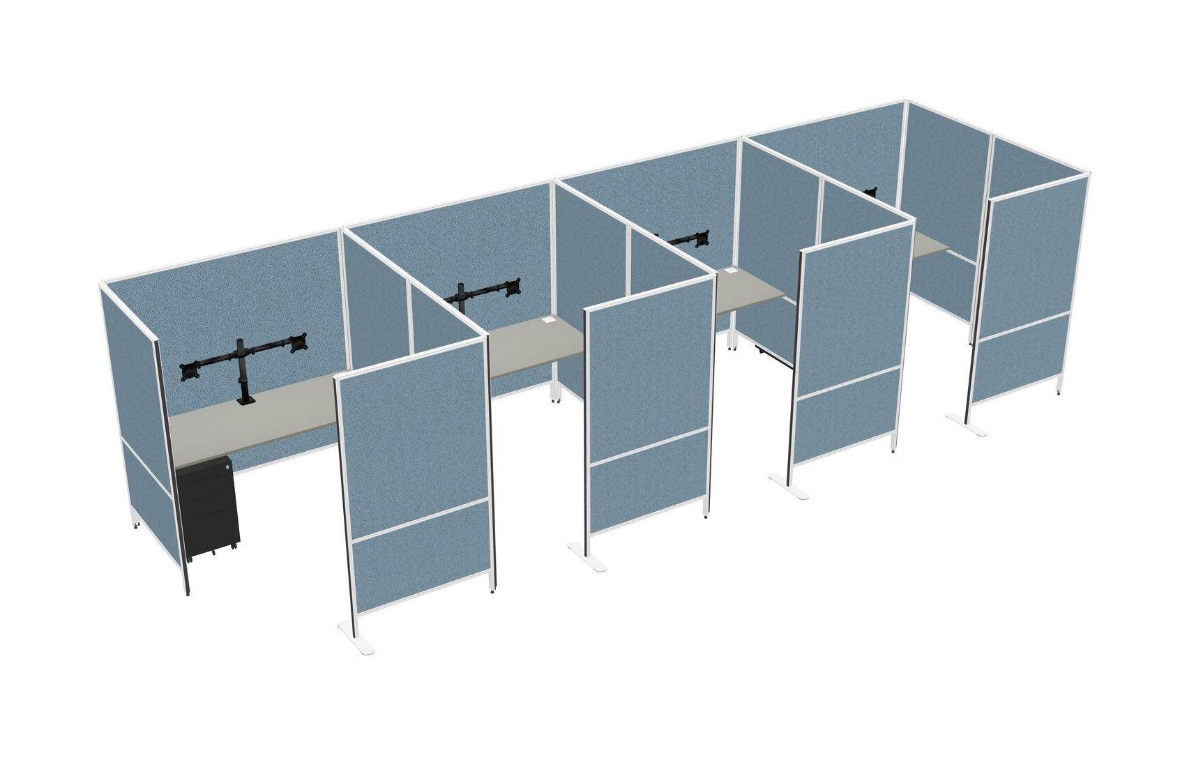Grey Shadows Flexible Panel System With Privacy For 4 + Metal Mobile Drawers + Monitor Arm (double Arms)