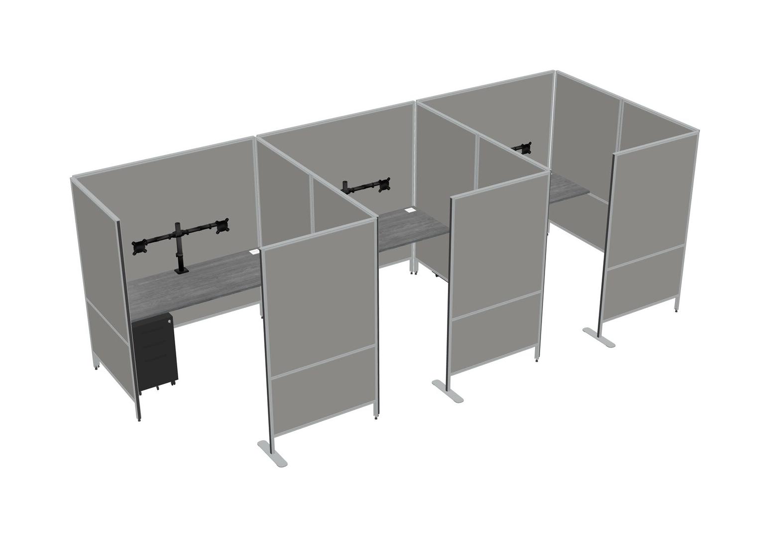 Grey Flexible Panel System With Privacy For 3 + Metal Mobile Drawers + Monitor Arm (double Arms)