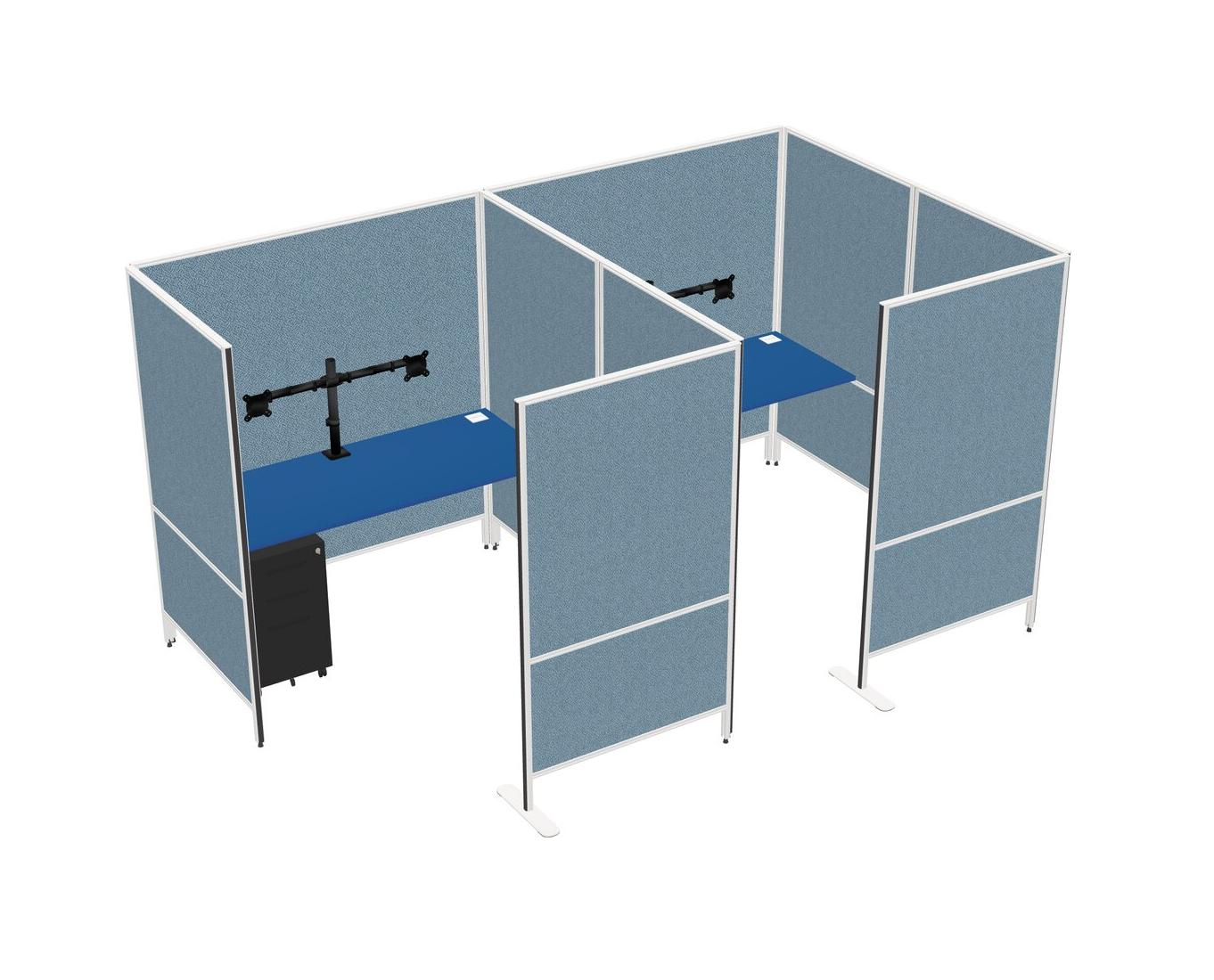 Prism Blue Flexible Panel System With Privacy For 2 + Metal Mobile Drawers + Monitor Arm (double Arms)