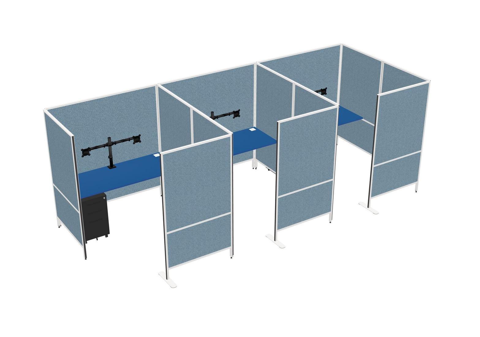 Prism Blue Flexible Panel System With Privacy For 3 + Metal Mobile Drawers + Monitor Arm (double Arms)