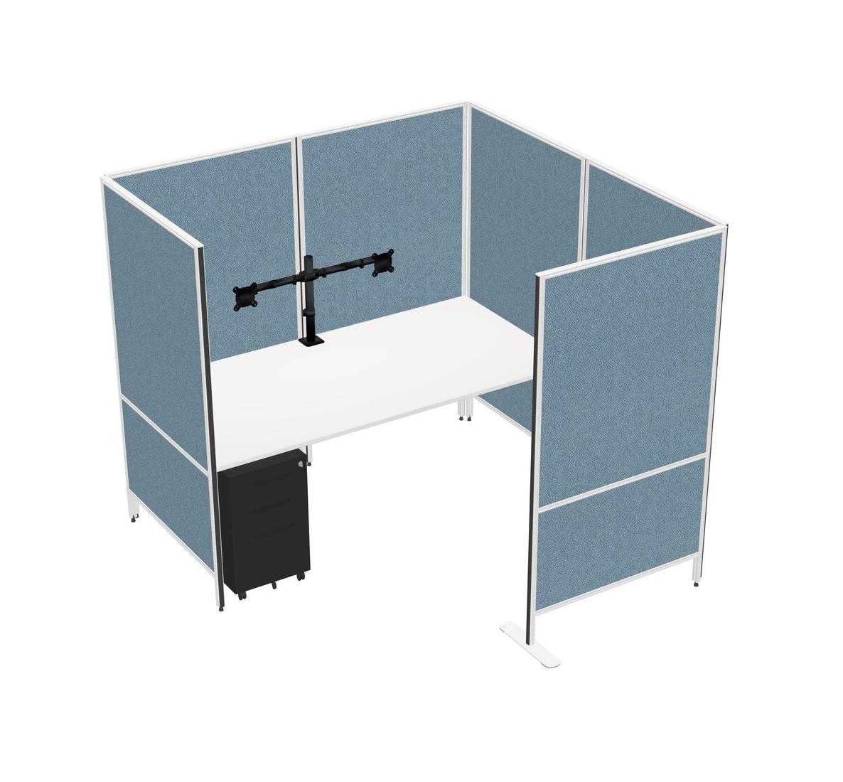 White Flexible Panel System With Privacy For 1 + Metal Mobile Drawers + Monitor Arm (double Arms)