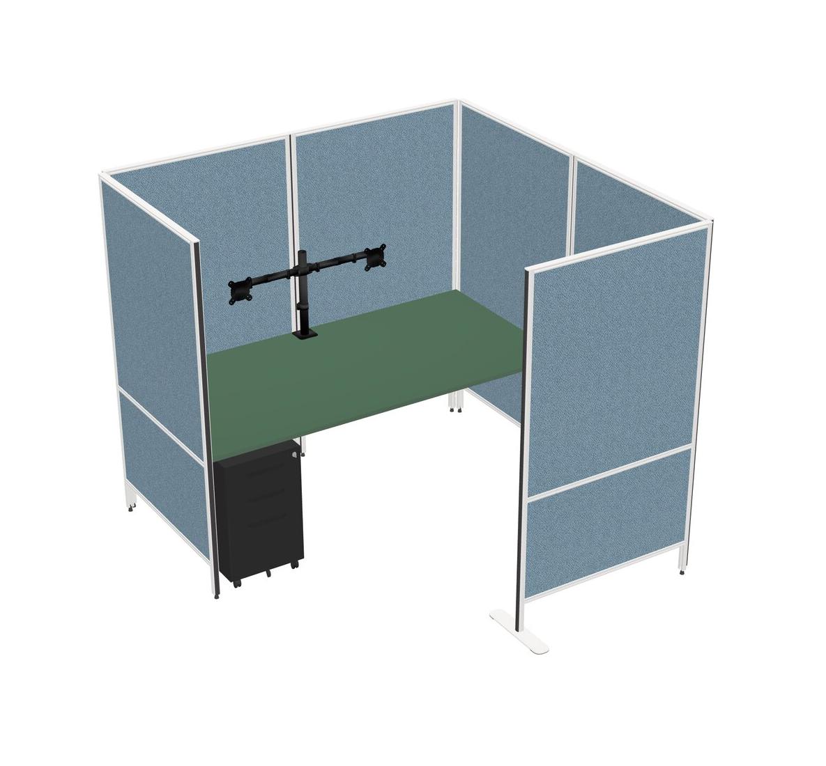 Green Flexible Panel System With Privacy For 1 + Metal Mobile Drawers + Monitor Arm (double Arms)