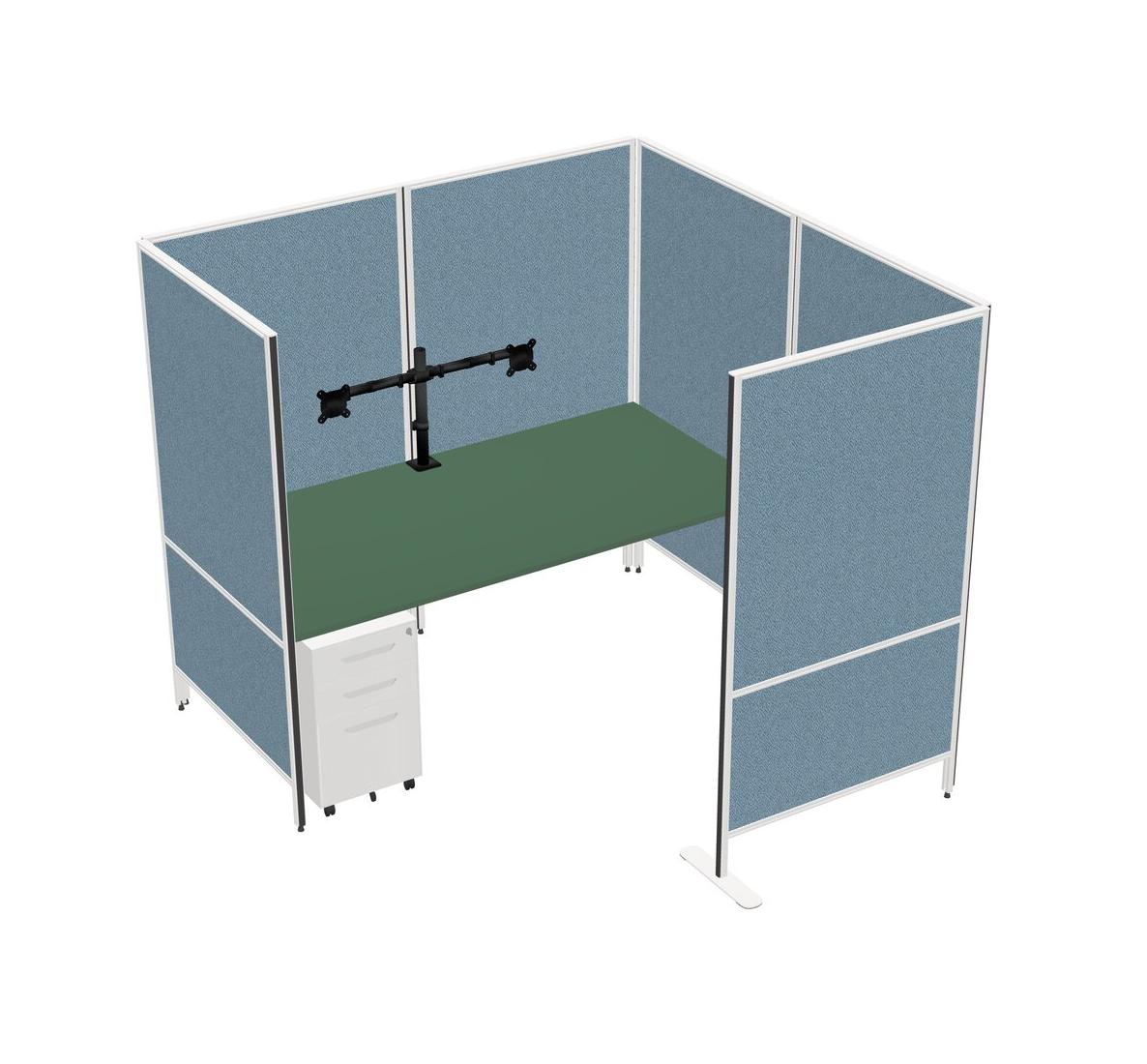 Green Flexible Panel System With Privacy For 1 + Metal Mobile Drawers + Monitor Arm (double Arms)