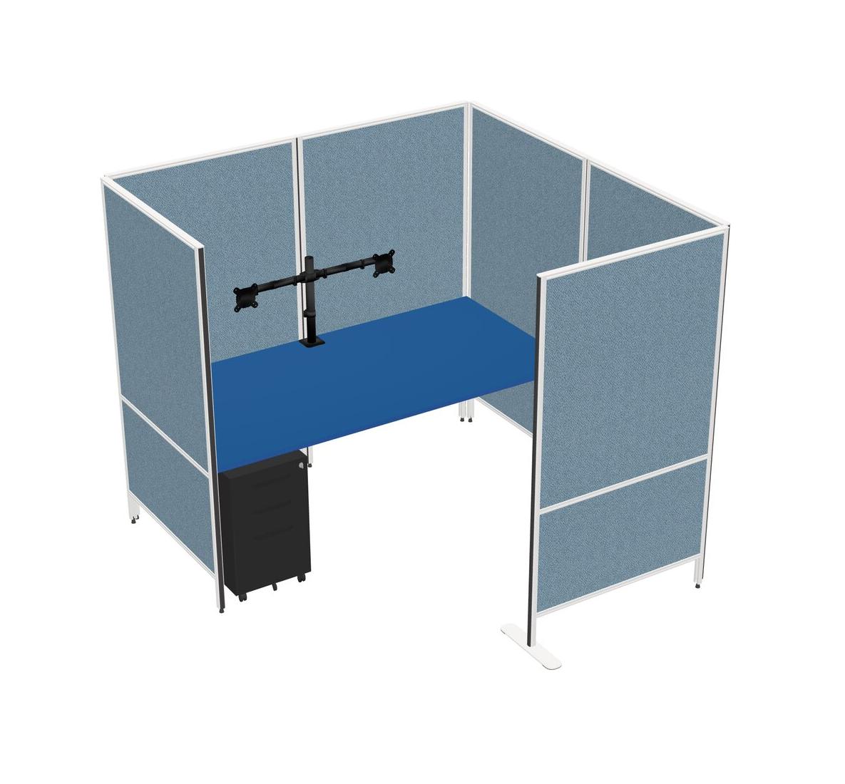 Prism Blue Flexible Panel System With Privacy For 1 + Metal Mobile Drawers + Monitor Arm (double Arms)