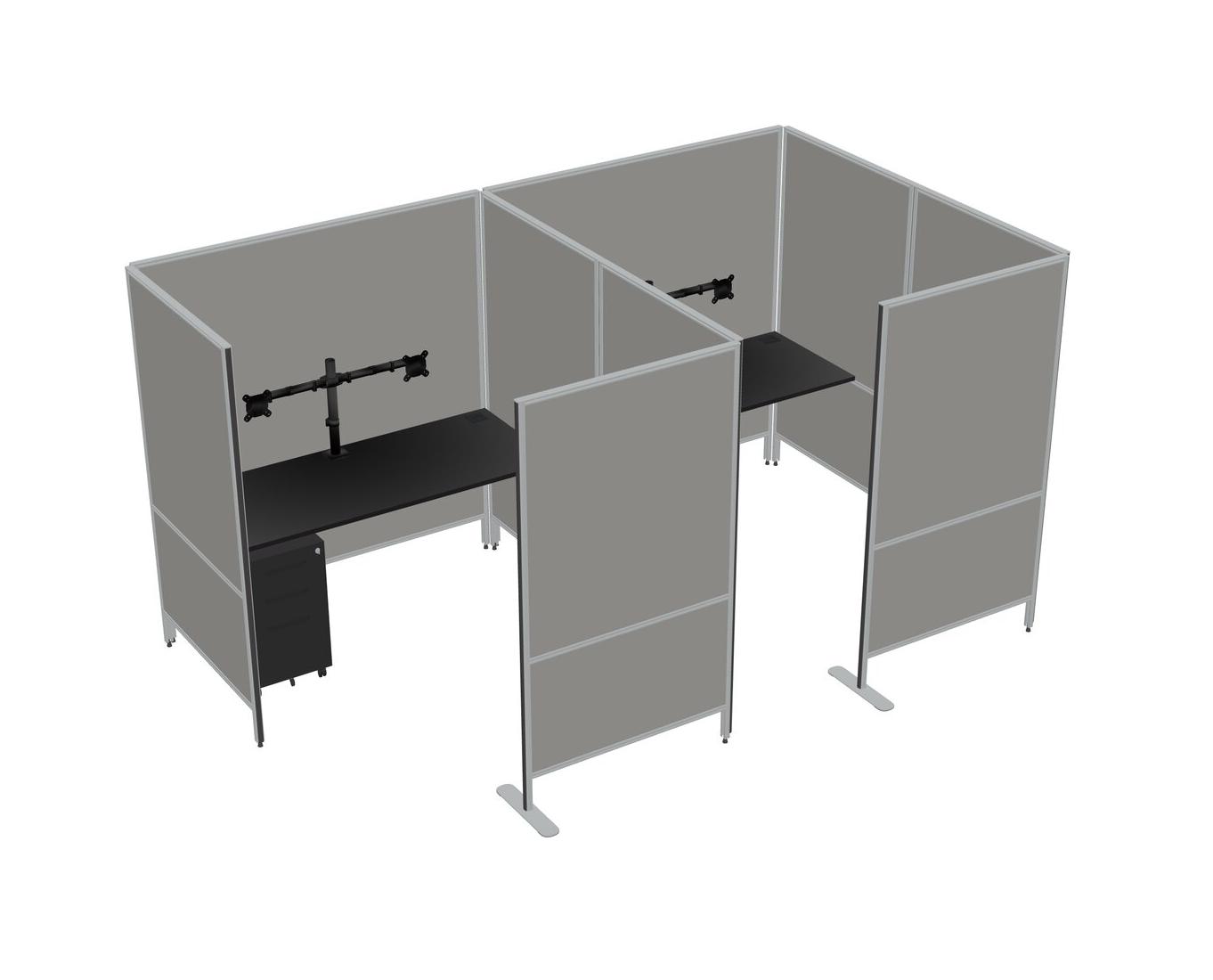 Black Flexible Panel System With Privacy For 2 + Metal Mobile Drawers + Monitor Arm (double Arms)