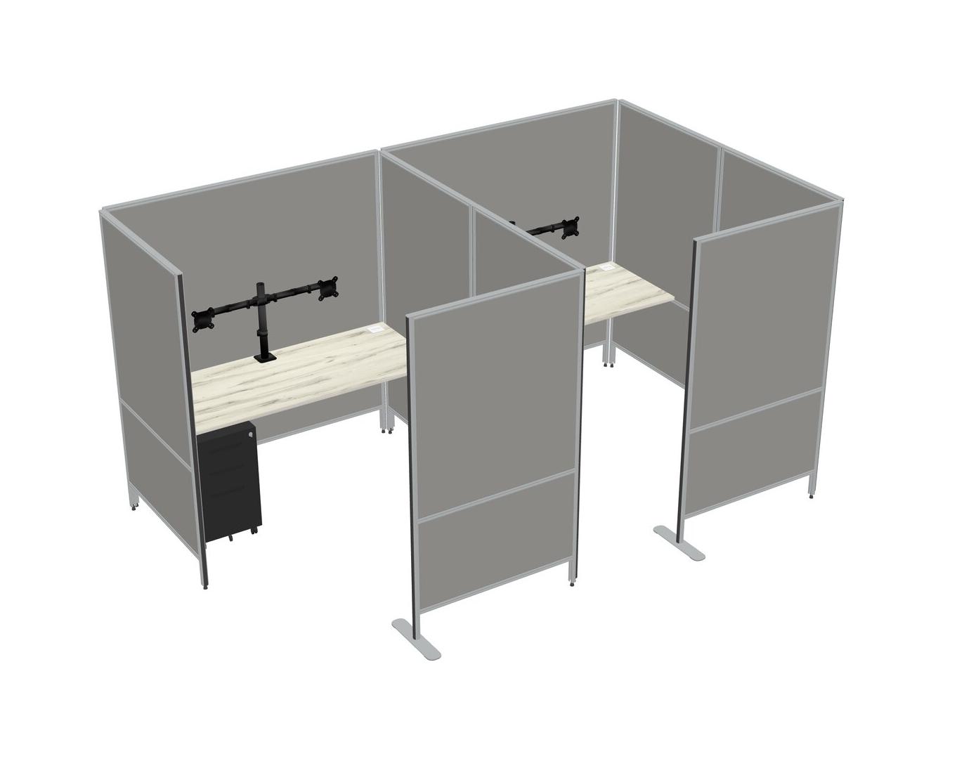 Heinne Holz Flexible Panel System With Privacy For 2 + Metal Mobile Drawers + Monitor Arm (double Arms)